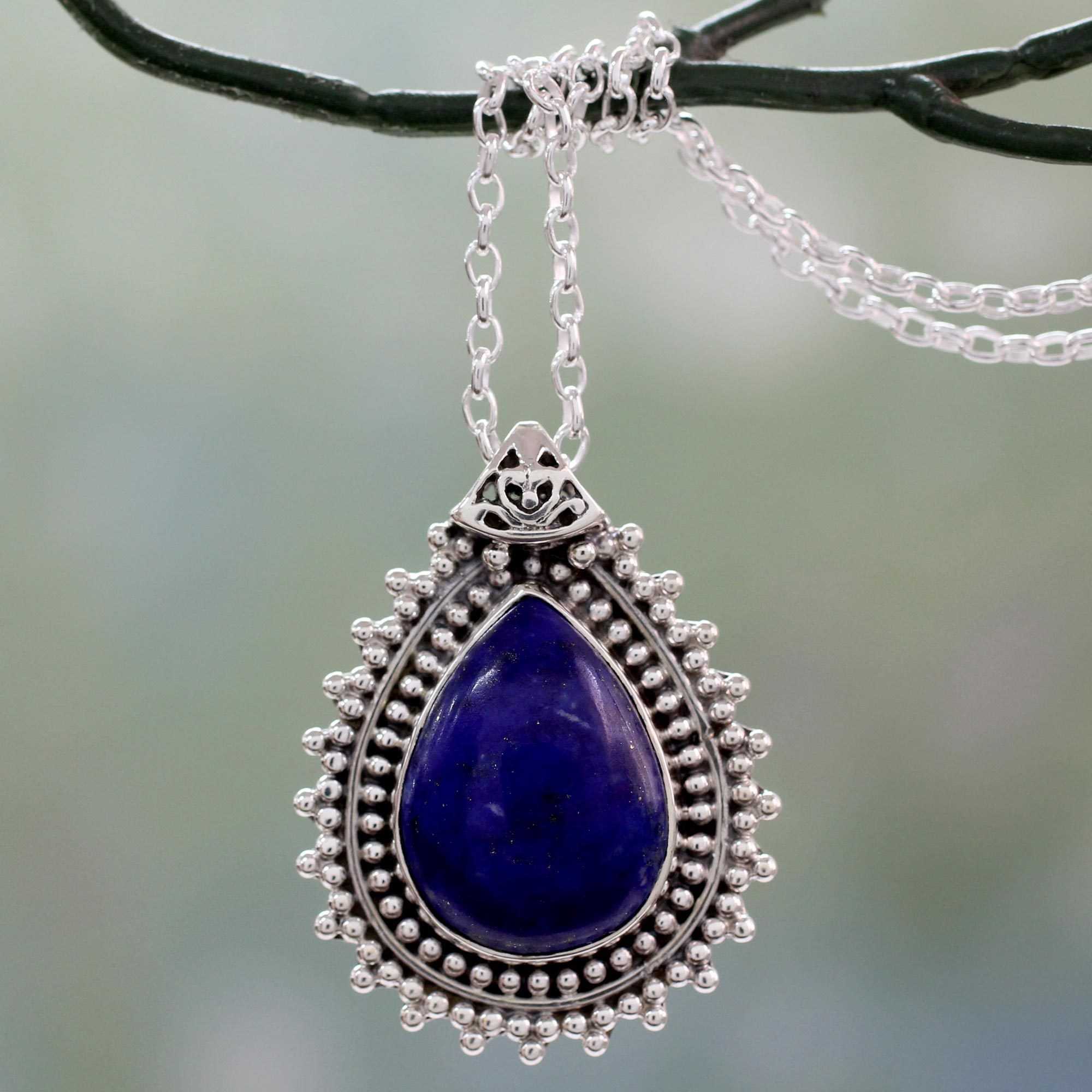 Lapis Lazuli Necklace from India Crafted with 925 Silver, 'Blue Antiquity'