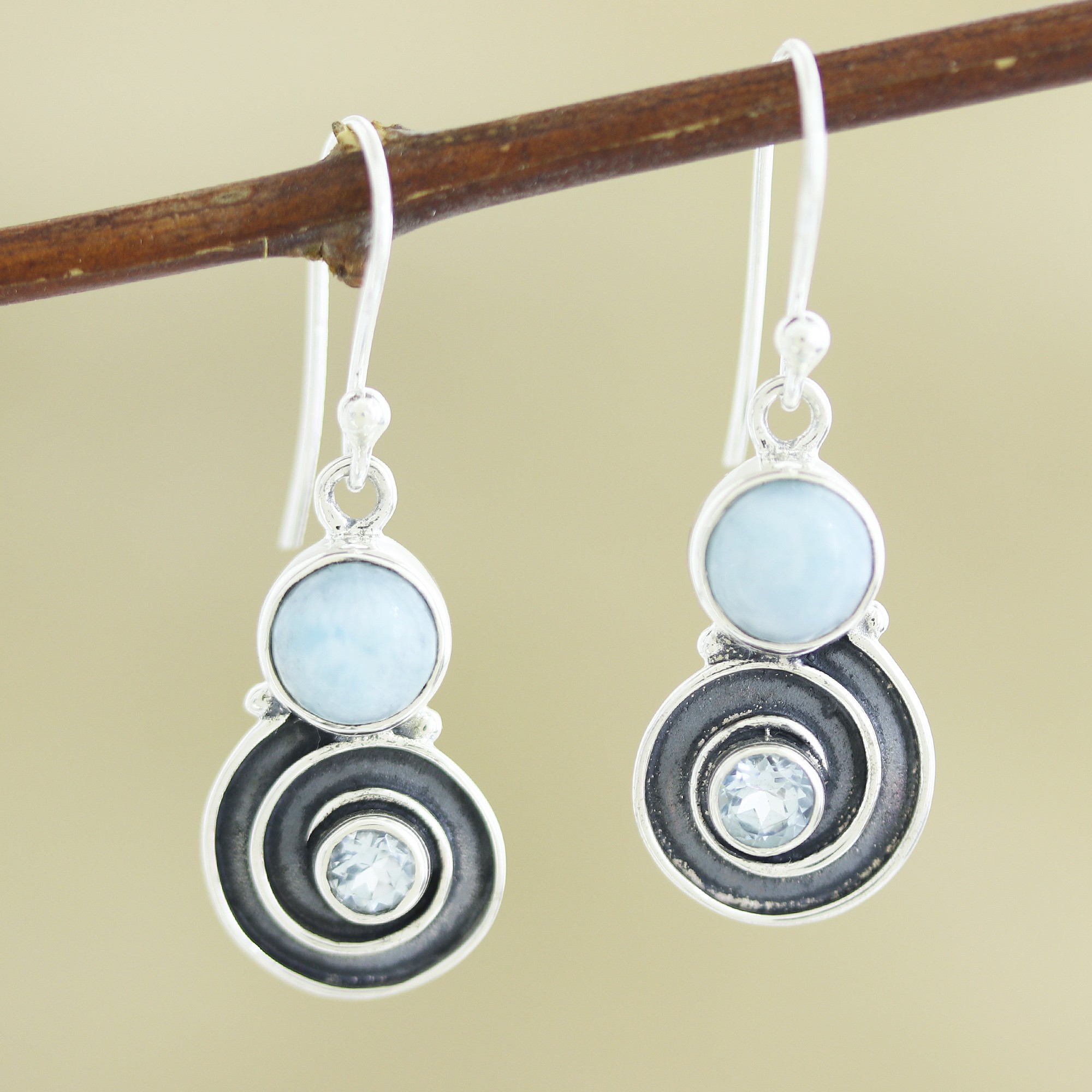 Larimar and Blue Topaz Sterling Silver Dangle Earrings, 'Sky Spiral'