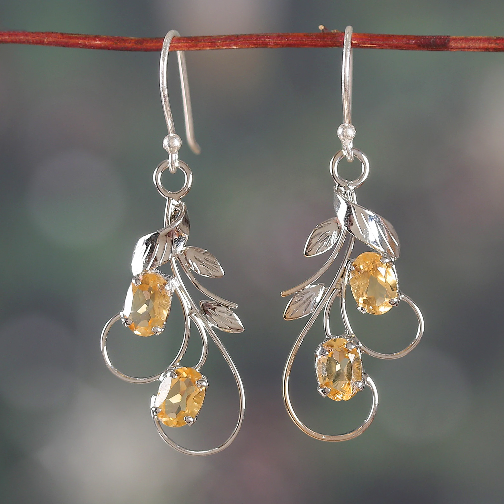 Nature's delicate dance is captured in these exquisite dangle earrings, a tribute to the fluid lines of tendrils and the gentle curve of leaves. Presented by India's Alok Jain, bright citrine gems nestle within polished sterling silver, promising to imbue any look with refined grace.