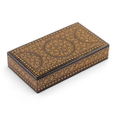 Leaf-Patterned Black Gold Papier Mache Wood Decorative Box, 'Nightly Vine'