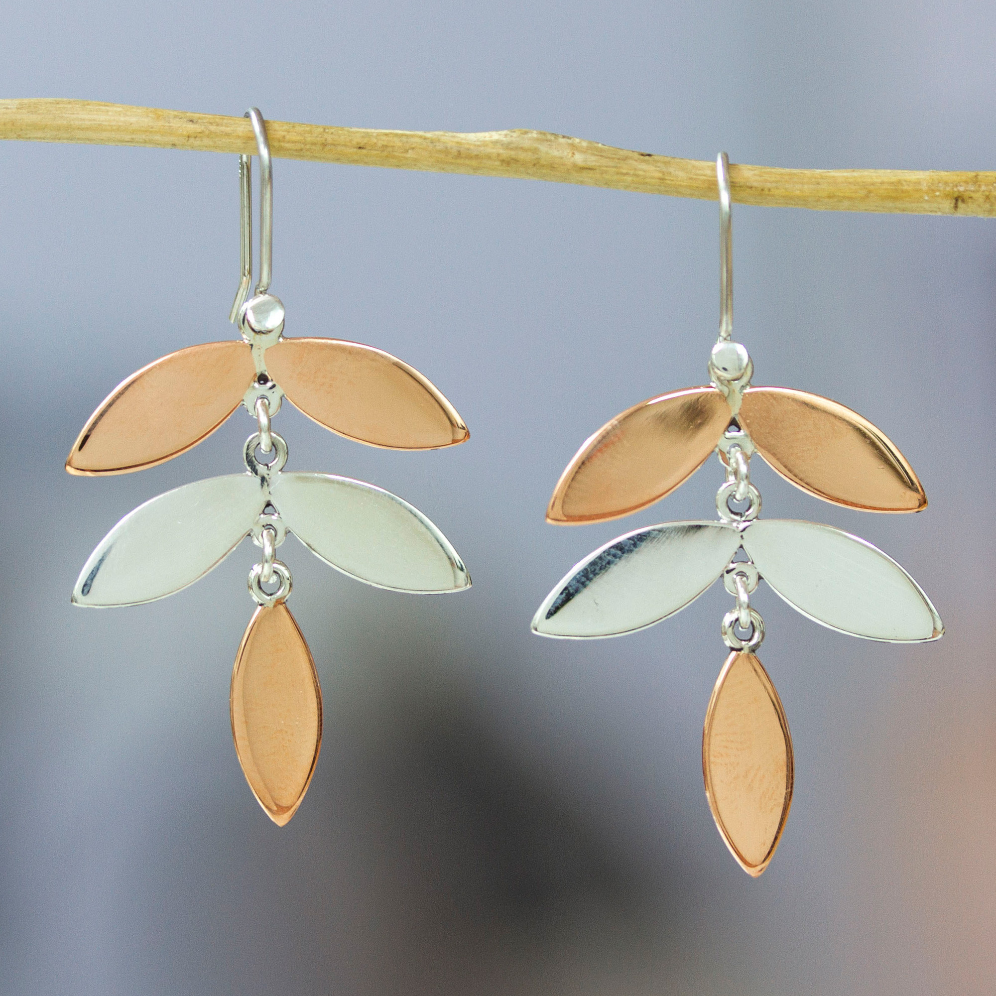 Leaf-Shaped Modern Copper Taxco Silver Dangle Earrings, 'Trendy Leaves'