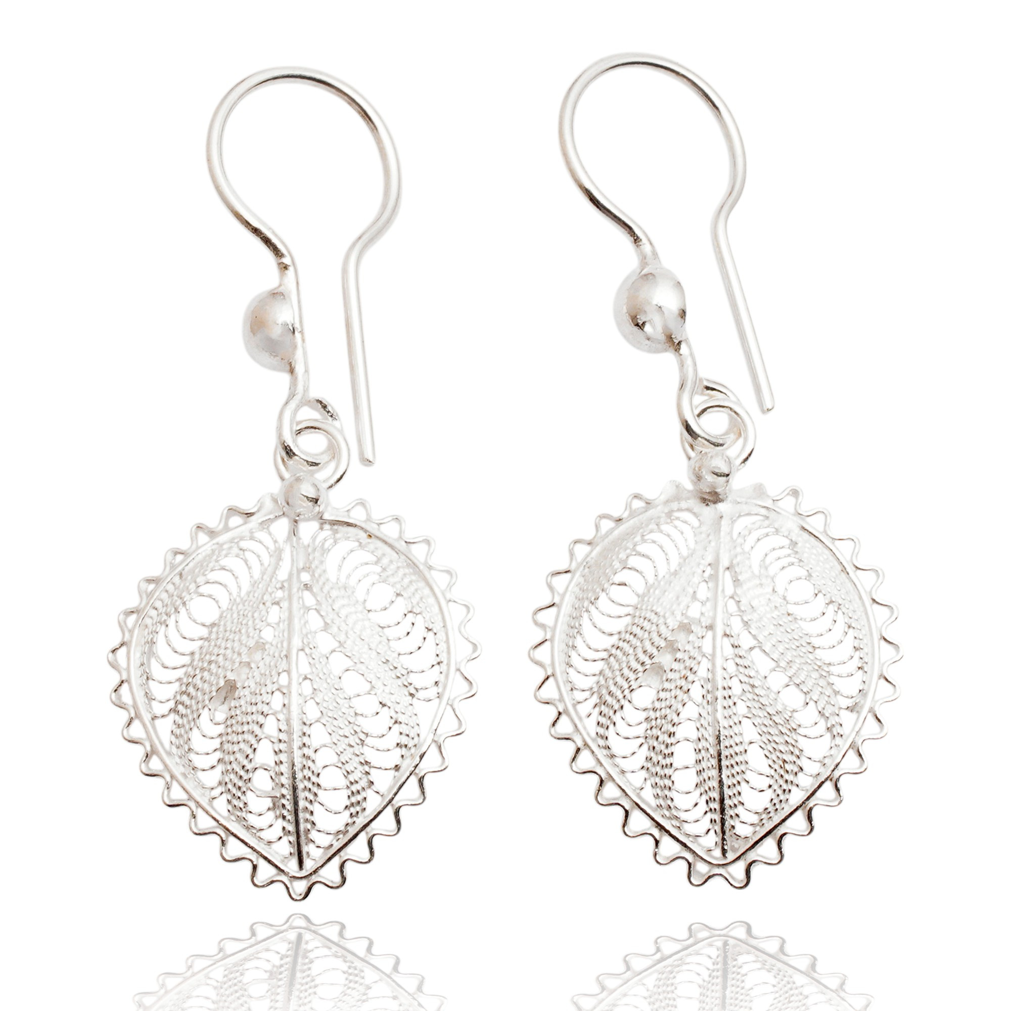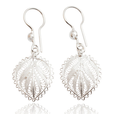 Leaf-Shaped Silver Filigree Dangle Earrings from Java, 'Heart of Leaves'