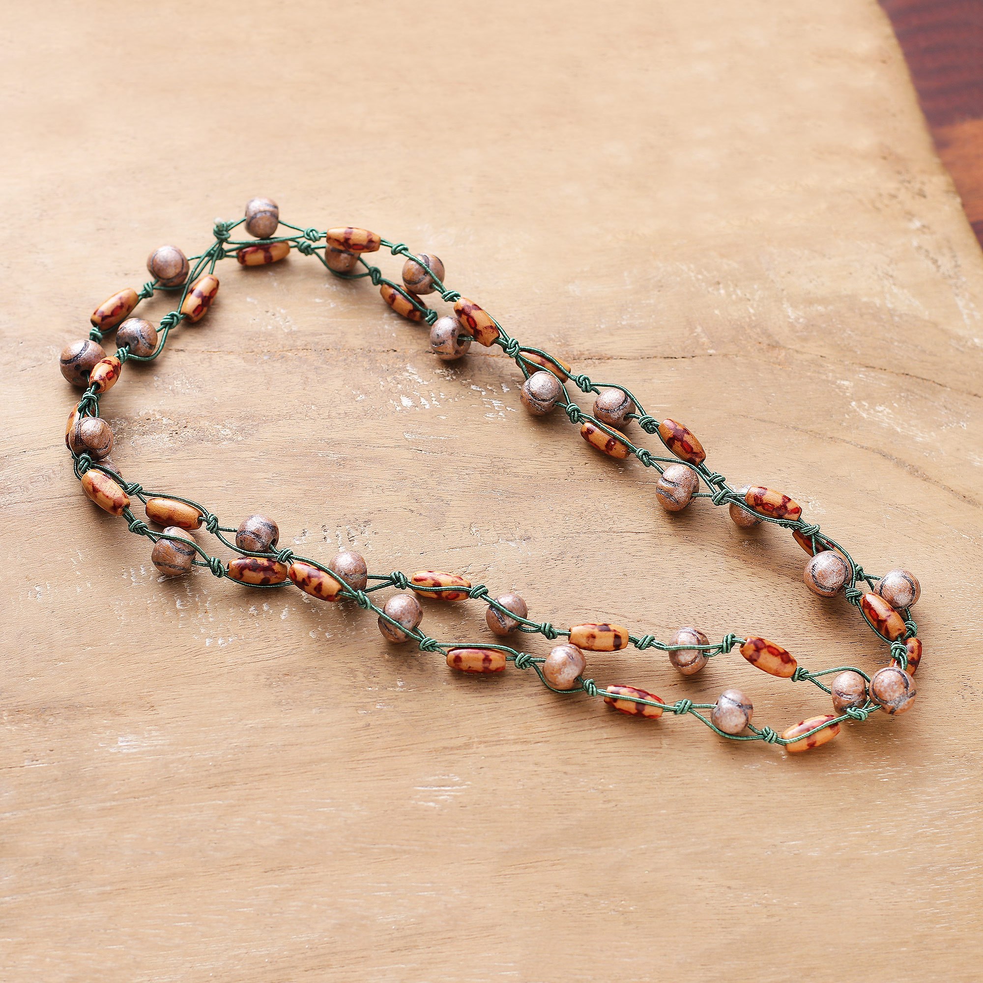 Long Strand Necklace with Painted and Printed Wooden Beads, 'Modern Glamour'