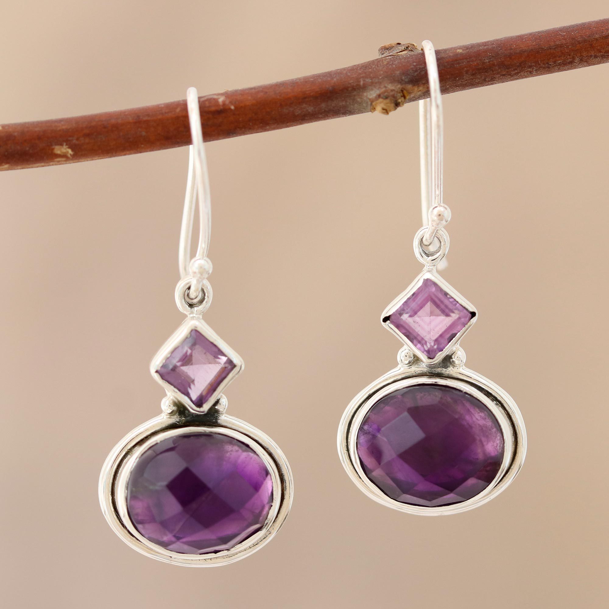 Luxe Amethyst Dangle Earrings from India, 'Purple Luxe'