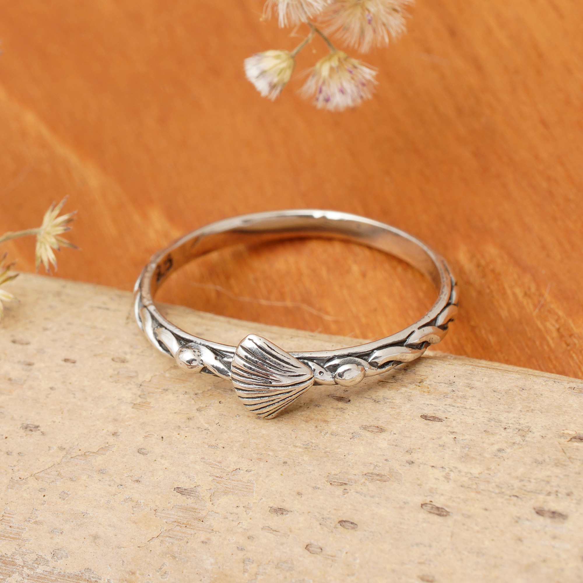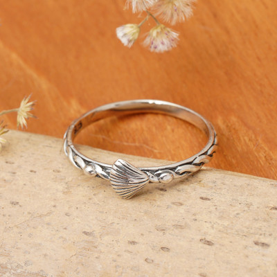 Marine-Themed Sterling Silver Shell Band Ring from Bali, 'Princess Shell'