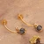 Capture the mystique of the northern lights with these enchanting brass dangle earrings featuring labradorite gemstones that shimmer with flashes of blue, gold and brown. Each stone tells its own story through mesmerizing iridescent play, shifting and dancing as you move through your day. The warm golden brass creates a perfect frame for these mysterious gems, blending bohemian charm with timeless elegance in a must-have design from India's Aditya Agarwal.