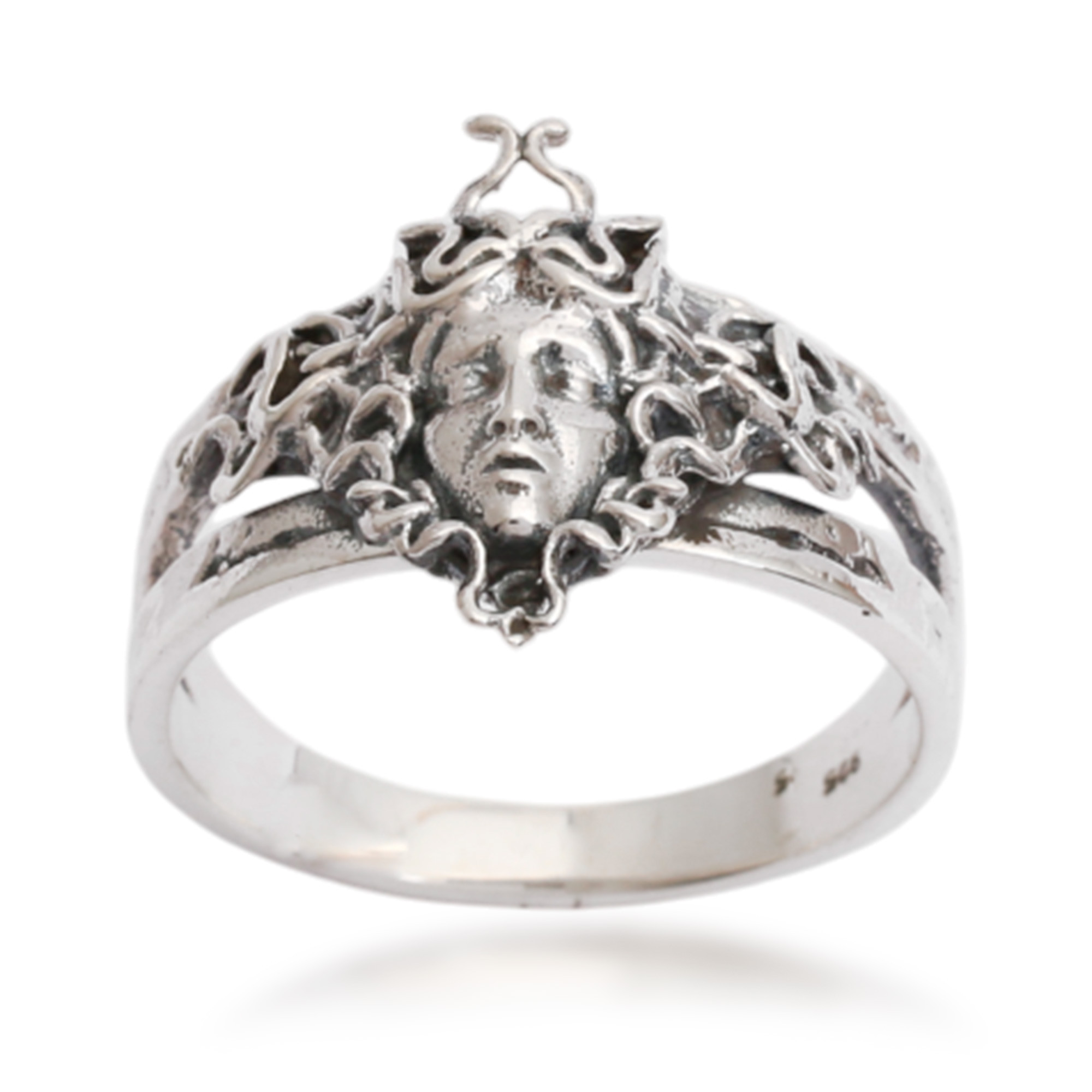 Serpentine locks twist and coil in mesmerizing detail across this show-stopping cocktail ring, where the legendary Medusa takes center stage in precious sterling silver. Balinese artisan Gede Agus Mahardika's captivating creation masterfully contrasts polished highlights against rich oxidized shadows, creating dramatic depth that transforms ancient mythology into modern luxury. Bold, mythical and utterly unforgettable, this ring commands attention with every gesture.