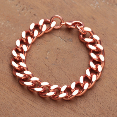 India's Sumit Dhawan looked at the traditional curb chain and asked: what if we made it glow? The answer is this copper-plated link bracelet for men that wraps your wrist in rosy, reflective metal. Each chunky link is satisfyingly substantial, creating a rhythm of rounded edges and open spaces that moves with you. For men who appreciate when classic design gets a warm, contemporary update, this is your new go-to piece.
