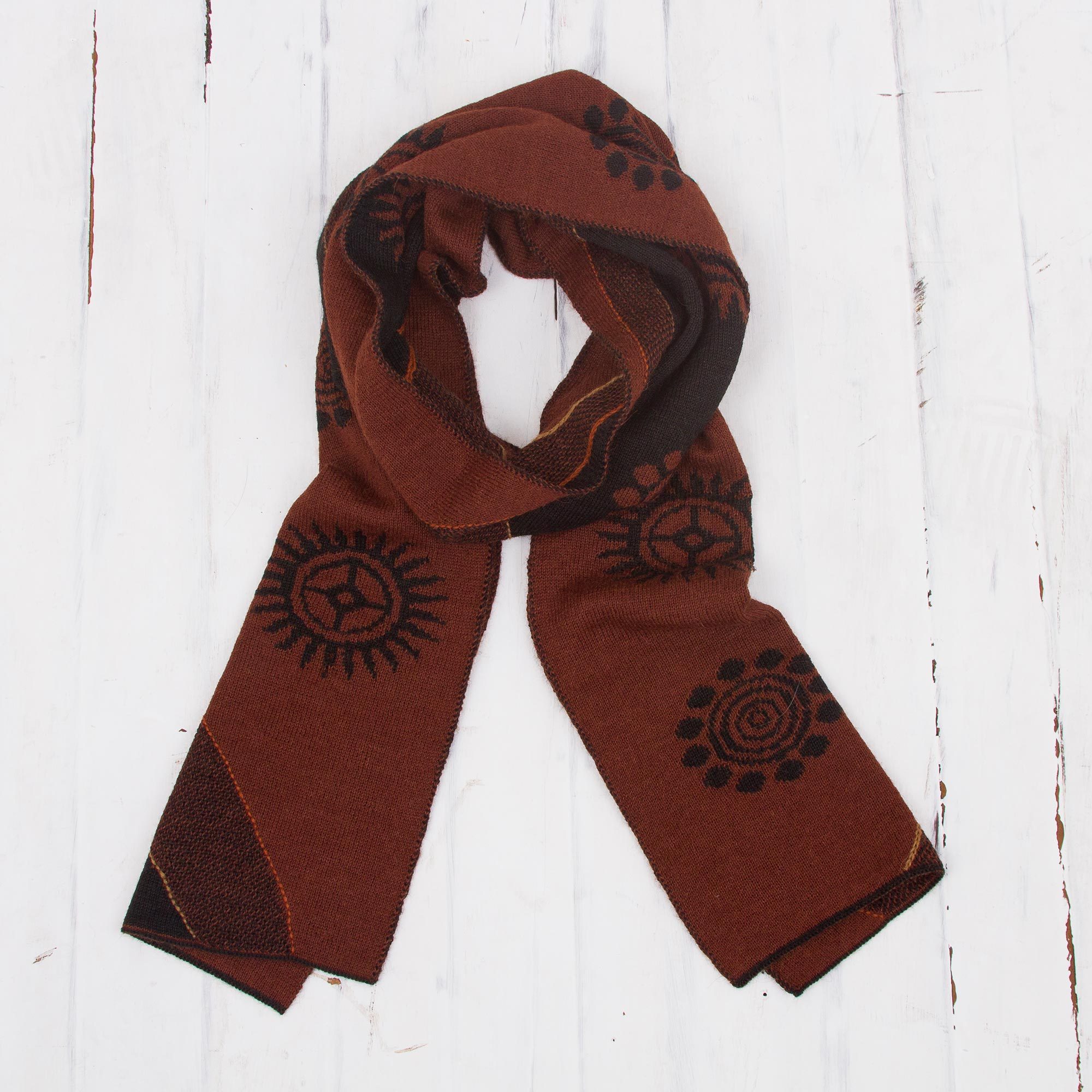 Men's Black and Mahogany Alpaca Blend Scarf from Peru, 'Mahogany and Black Cosmovision'