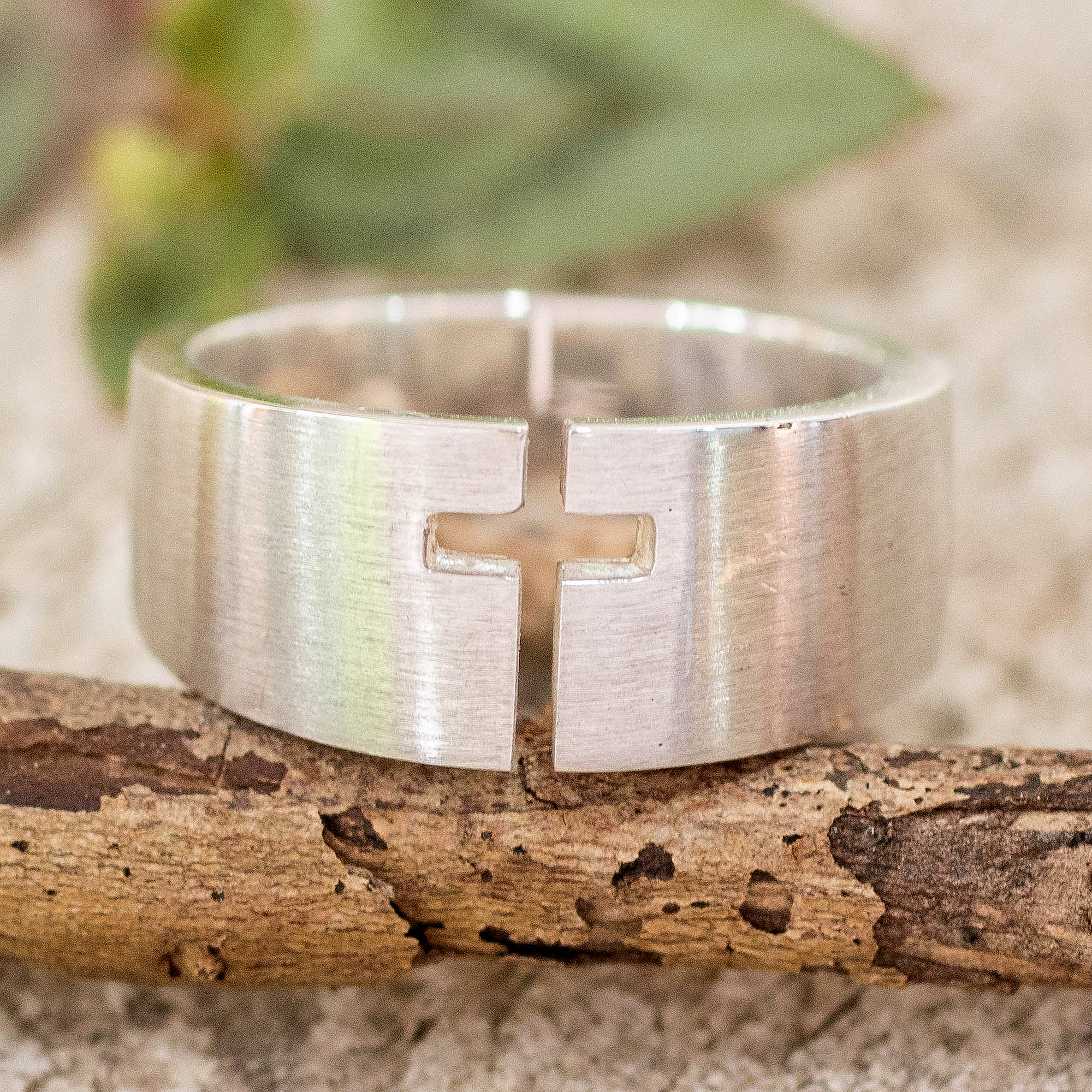 A strong hope is built on the evergreen soil of faith. Moved by peace, by their dreams, and by their prayers, Guatemala's Holy Symbols team uses sterling silver to craft this domed ring, whose brushed-satin finish enhances the cross silhouette set in the middle.