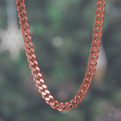 Indian designer Sumit Dhawan proves that classics never get old with this copper curb link necklace for men that brings serious warmth to your neckline. The rounded, interlocking links create that iconic open pattern with just enough space between each connection to keep things interesting, while the rosy copper finish adds an unexpected twist to traditional chain design. It's the kind of accessory that slides effortlessly from casual to dressed up, sitting close to the collar with a comfortable weight that reminds you it's there without demanding attention. For men who know that timeless style is always the right move.