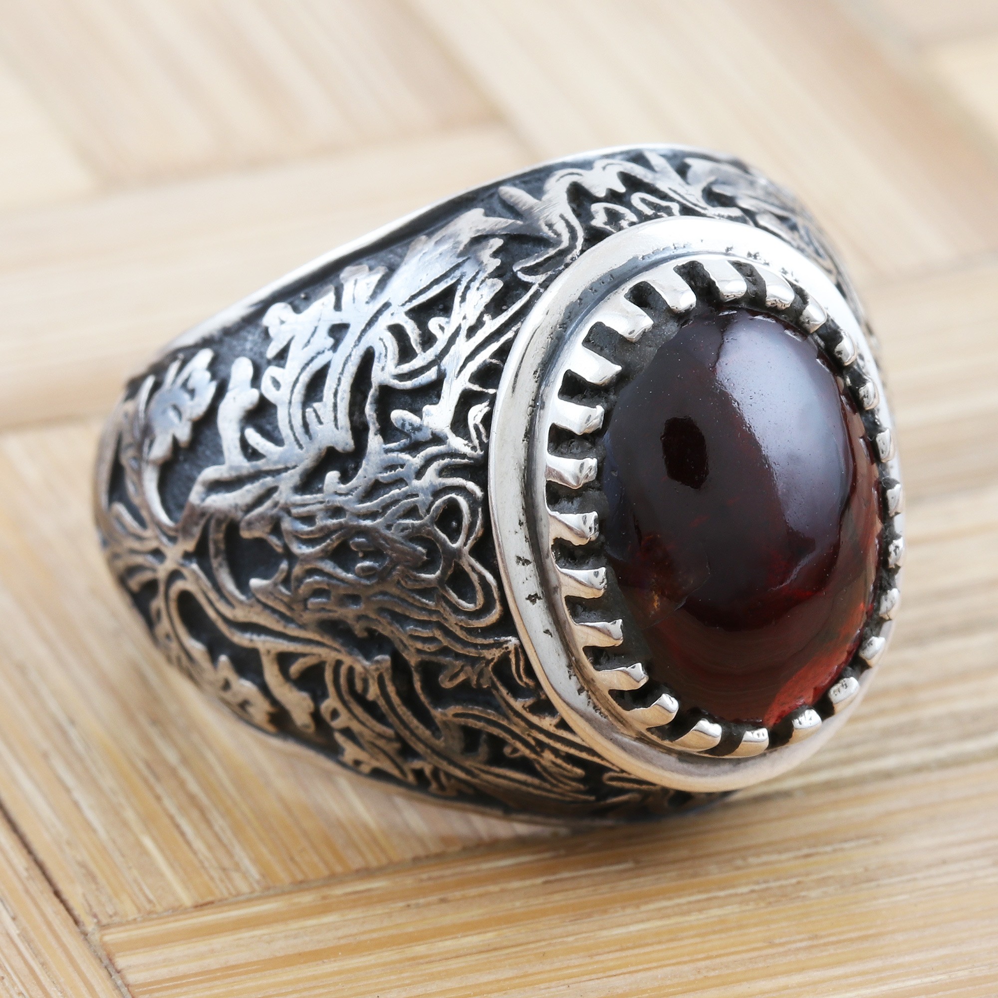 Men's Garnet and Sterling Silver Cocktail Ring, 'Burning Hearth'
