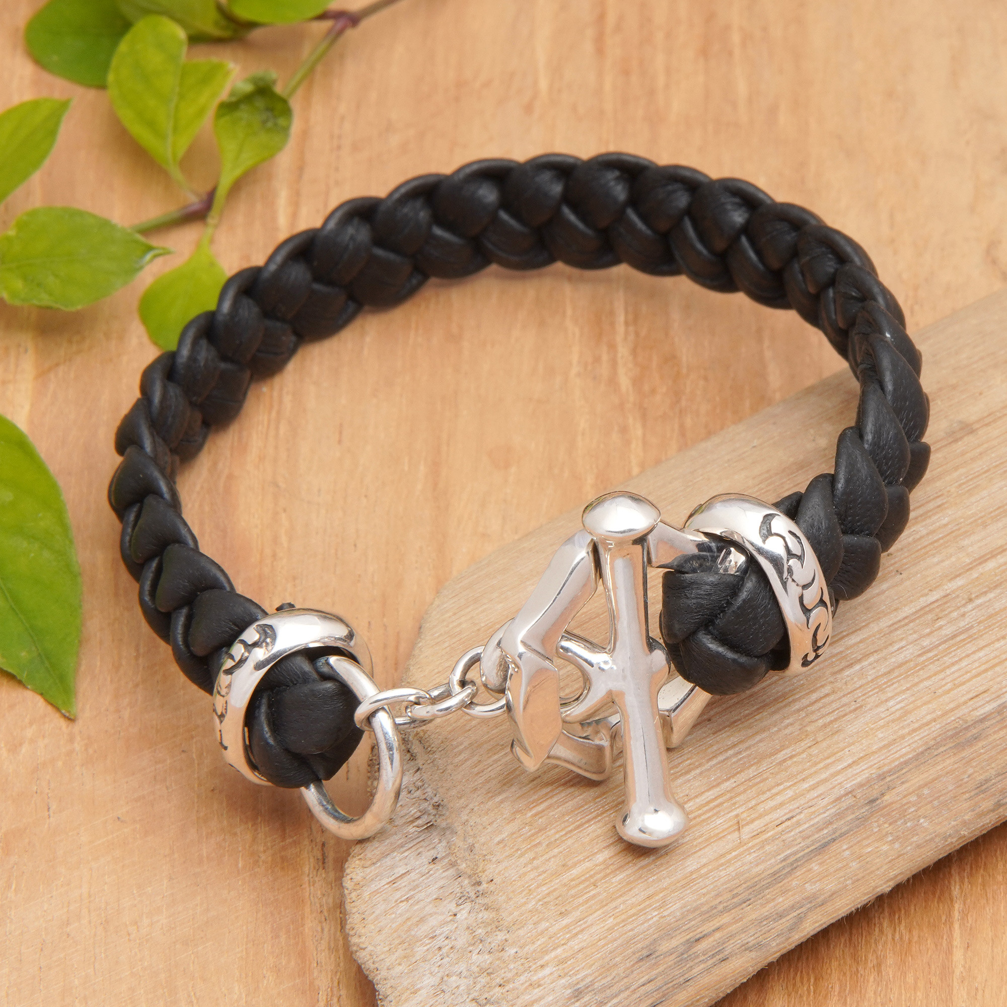 Mens Handcrafted Braided Bracelet with Sterling Silver Clasp, 'Tough Luck'