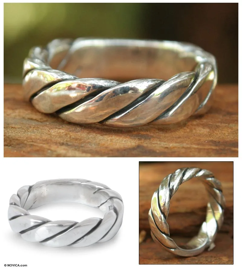 Men's Handcrafted Sterling Silver Band Ring, 'Lives Entwined'