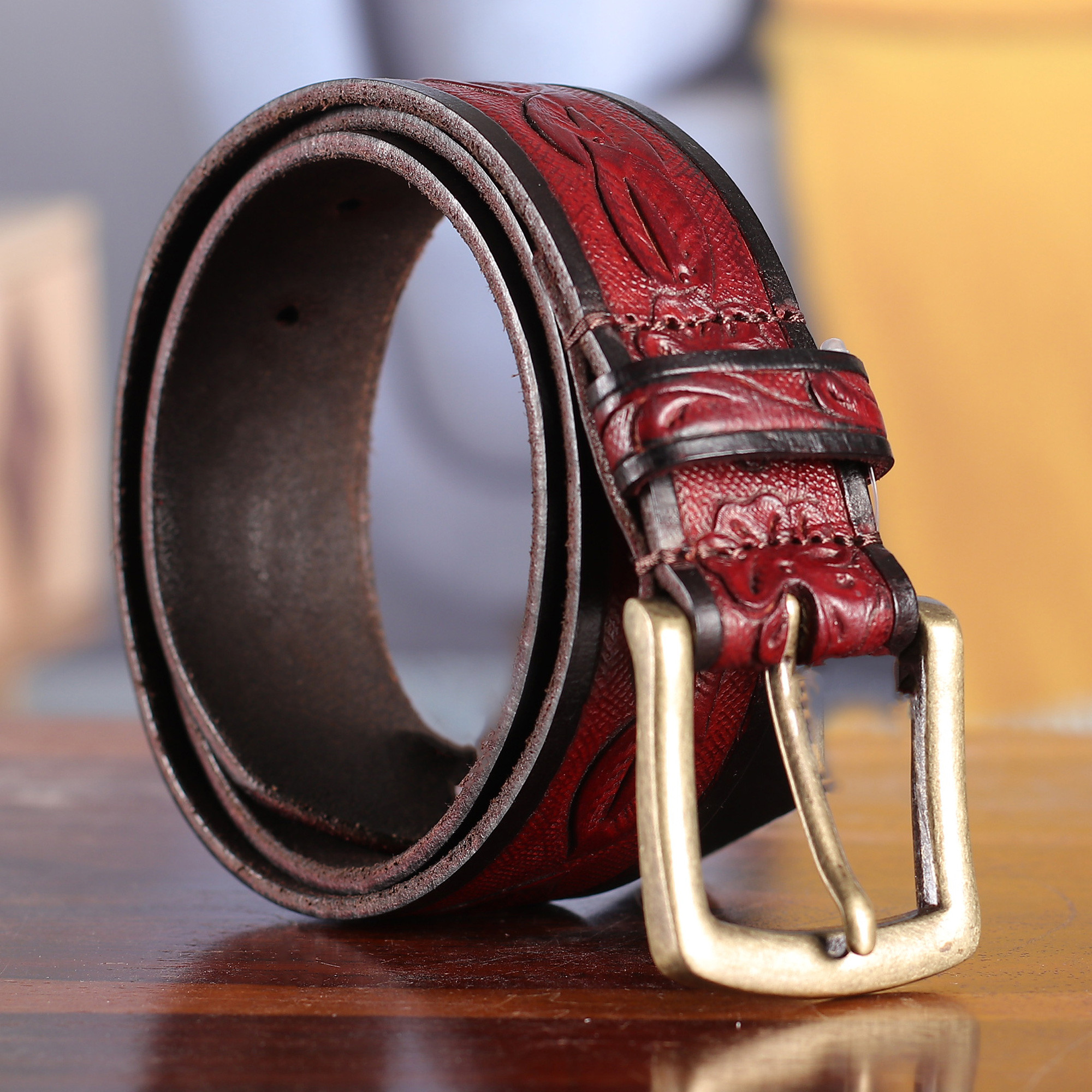 Men's Leather Belt in Russet with Hand-Tooled Patterns, 'Classic Russet'