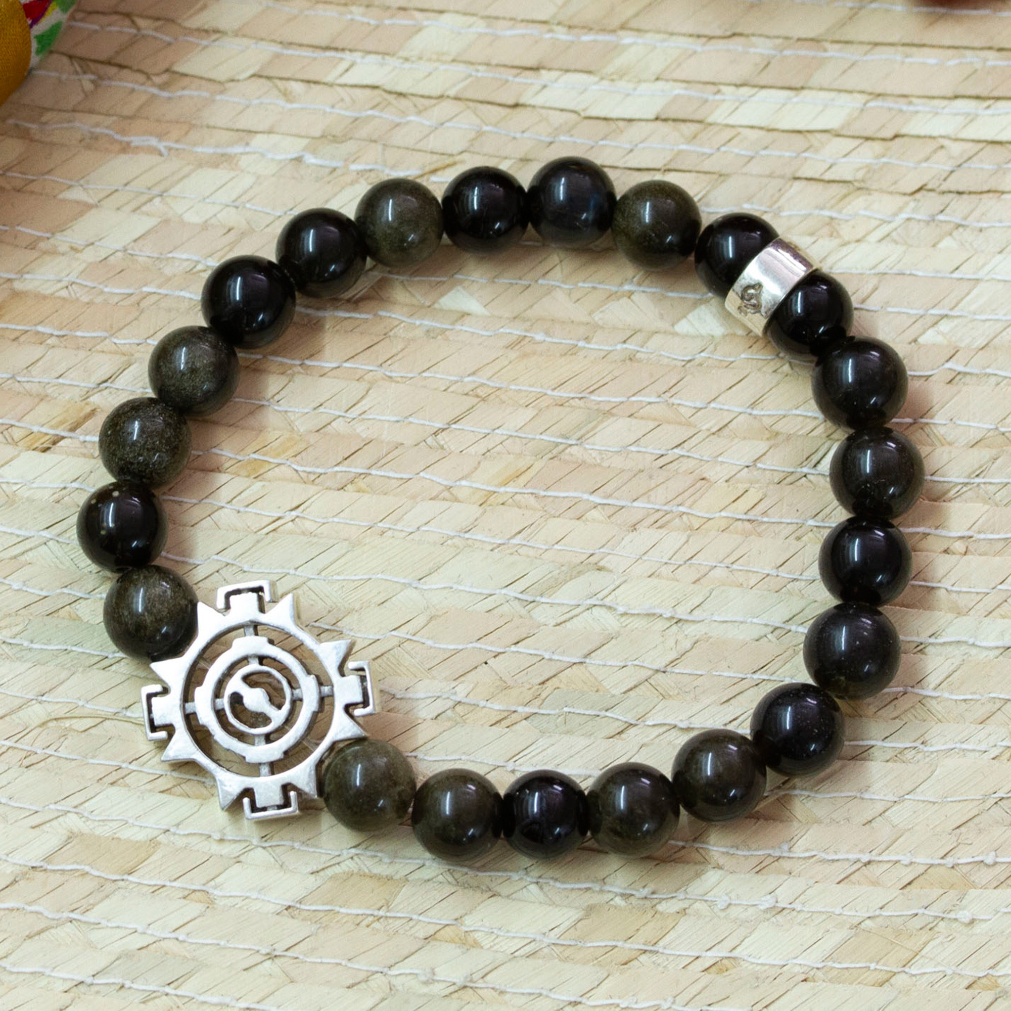 Turn heads with Mexican artisan Angel Pena's bold sun-inspired stretch bracelet for men. Featuring onyx beads paired with a shining Taxco sterling silver bead and a modern openwork sun motif, this bracelet is the ideal accessory for any wardrobe.