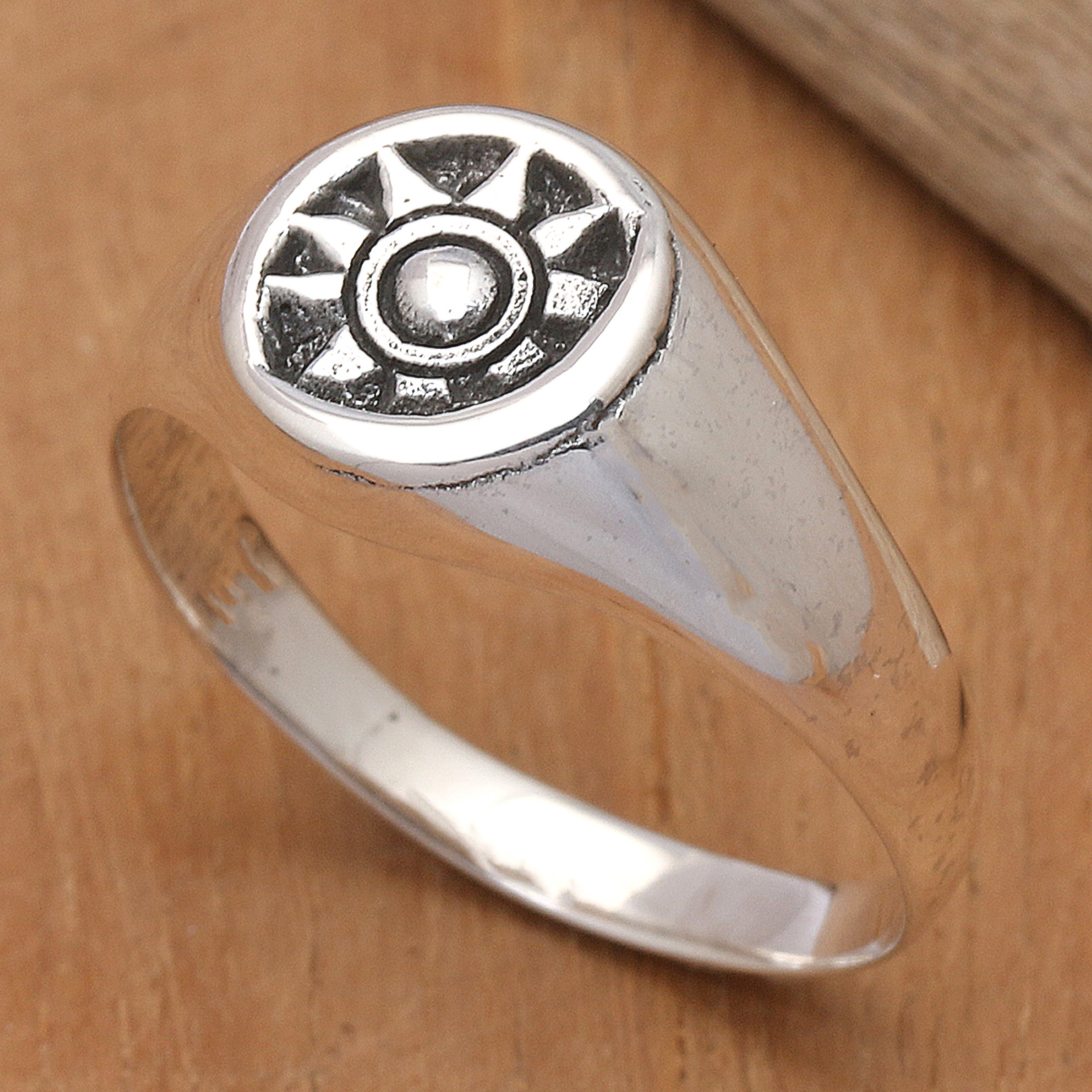 Men's Sun and Moon-Themed Sterling Silver Signet Ring, 'Afternoon Sunrise'