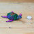 As alebrijes swim through the subconscious of the artisan's imagination, it seems fitting that they have flippers as this multicolored hand carved sea turtle does. Made using copal wood, this alebrije figurine by artisans Jesus and Roxana Hernandez of Oaxaca, Mexico, has a shell in glorious shades of green, purple, lavender, and brown; the creative geometric designs are patiently painted by hand. Pink flippers and a blue head complete the marine tortoise.