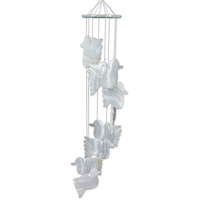 Mexican Handcrafted Natural White Onyx Dove-Themed Mobile, 'Feathers to Heaven'