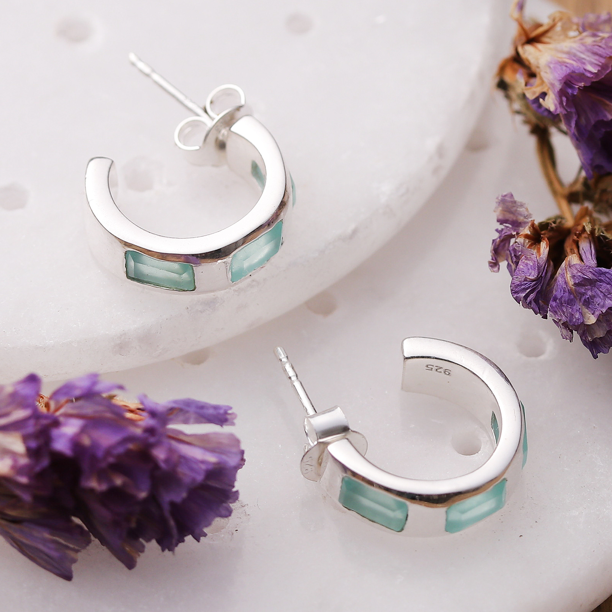 Minimalist 1-Carat Chalcedony Half-Hoop Earrings from India, 'Aqua Hoops'