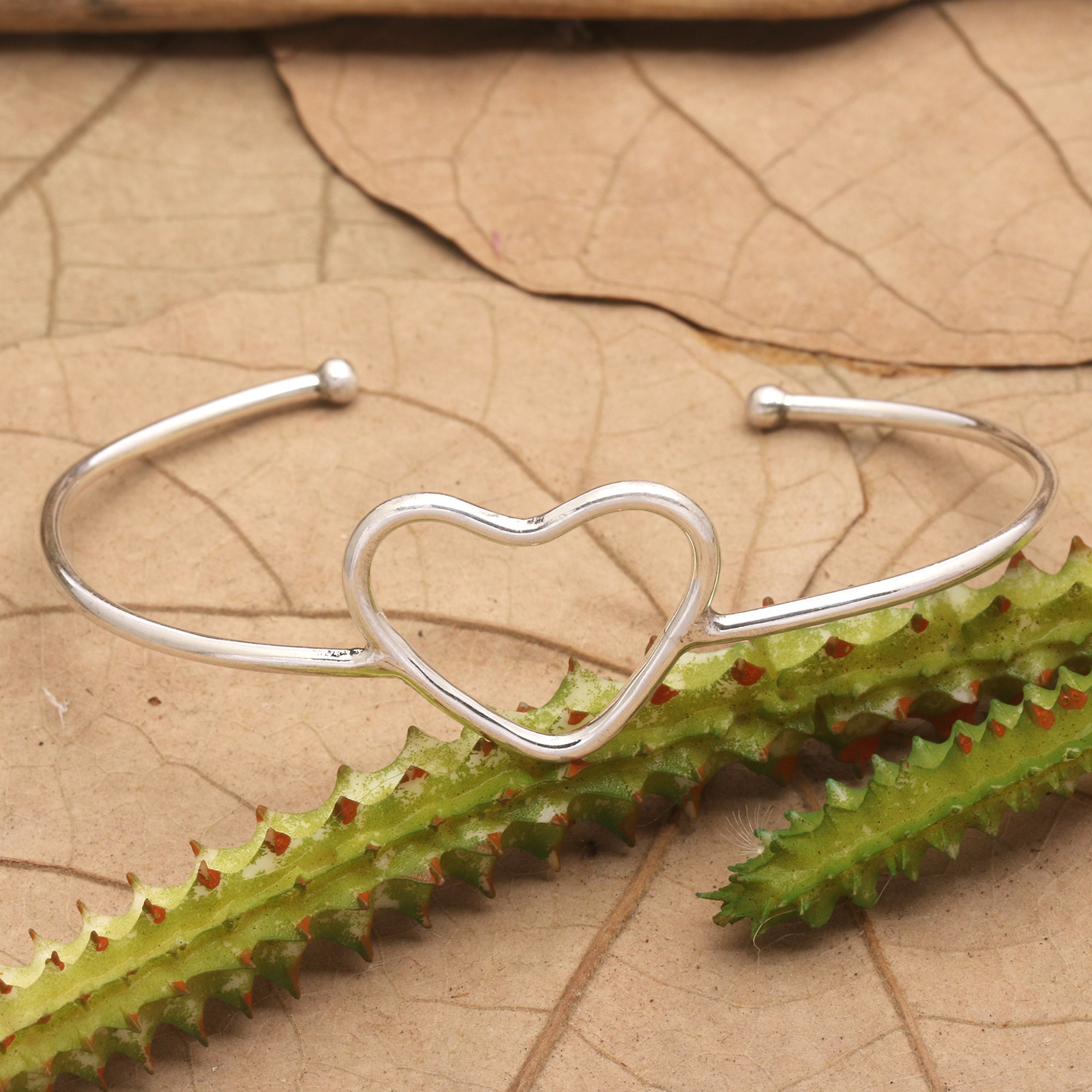 Minimalist Heart Symbol Sterling Silver Cuff Bracelet, 'Globe-Trotting's Heart'