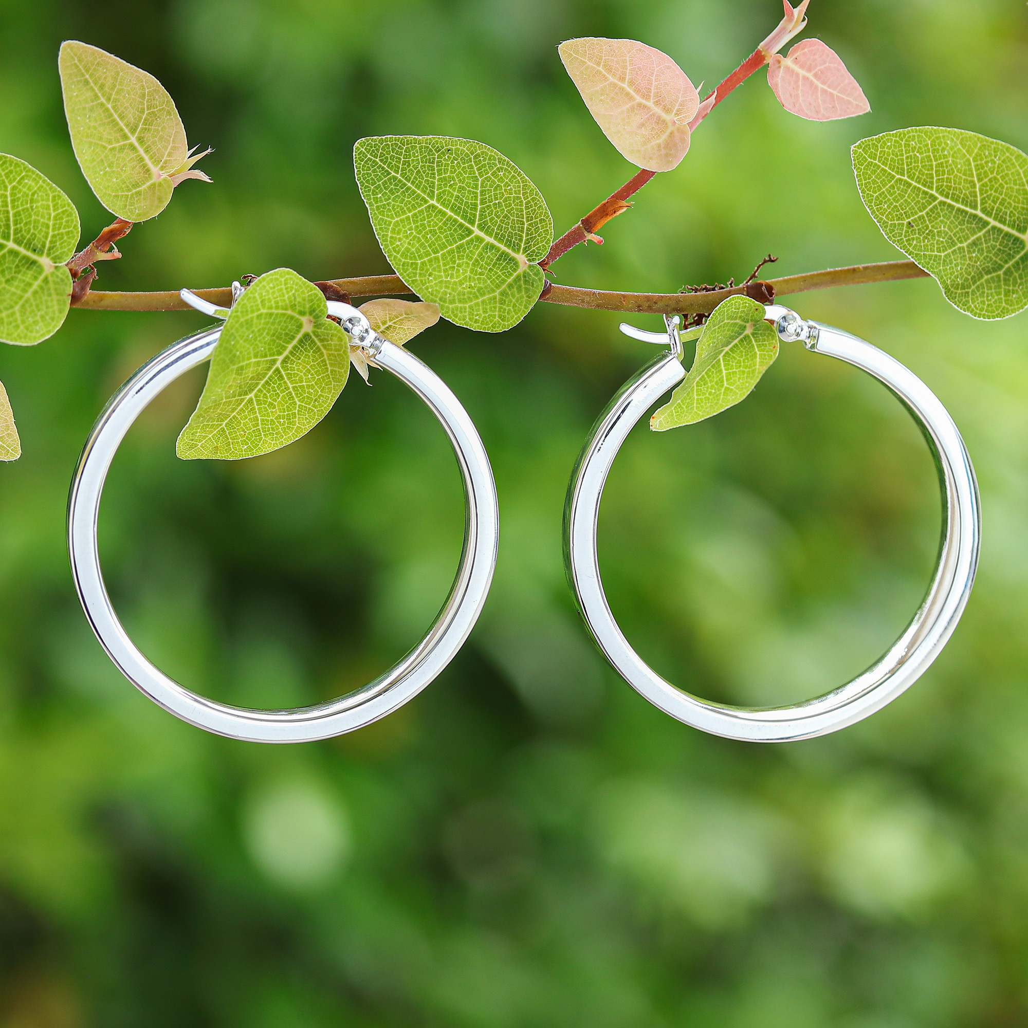 Minimalist-Inspired Polished Sterling Silver Hoop Earrings, 'One Thought'
