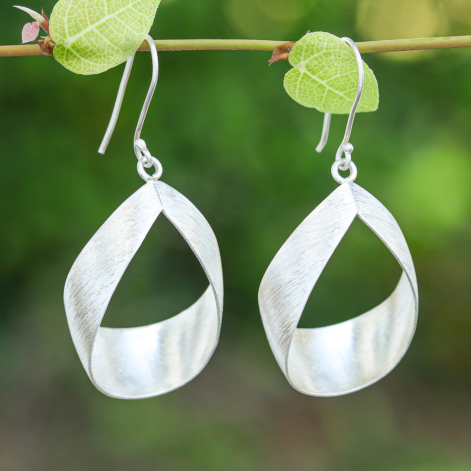 Minimalist Matte-Finished Sterling Silver Dangle Earrings, 'Noble Embrace'