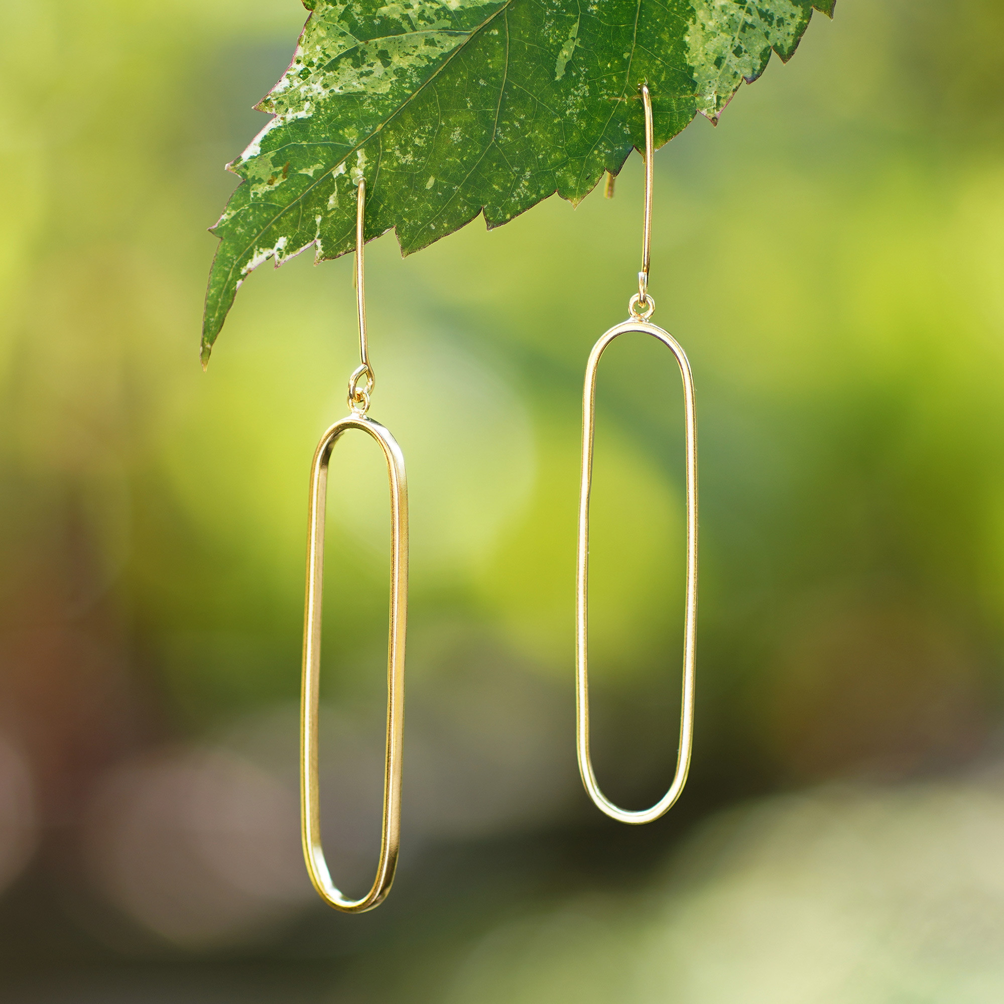 Turn heads with these stunning dangle earrings featuring a contemporary oval silhouette that brings a fresh perspective to traditional jewelry design, boasting 18k gold plating that adds warmth and luxury to the brass base. The modern shape creates beautiful movement and dimension, showcasing how Balinese artisan Suana Yasa's artistic vision transforms metal into statement pieces that feel both current and endlessly wearable.