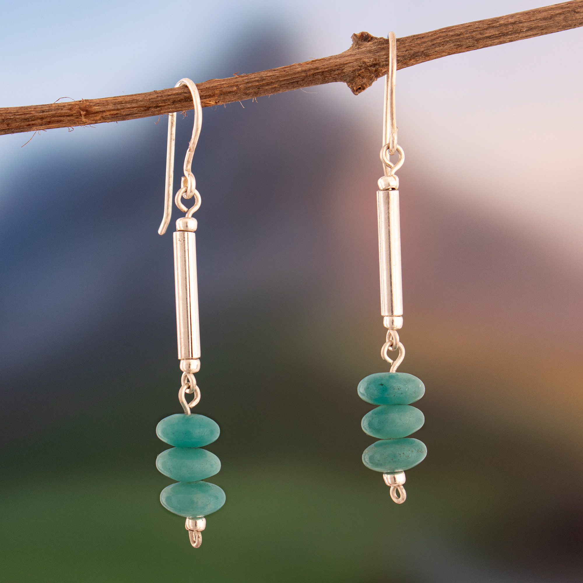 Minimalist Silver Dangle Earrings with Amazonite Gems, 'Bold Sophistication'