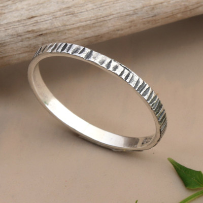 Minimalist Sterling Silver Band Ring with Textured Finish, 'Minimalist Textures'
