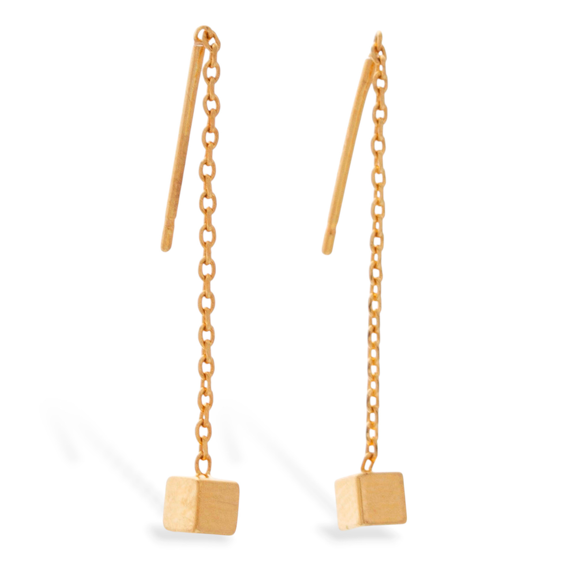 These threader earrings command attention with their sleek silhouette that captures and reflects light with every movement. The 24k gold-plated zinc construction delivers durability and luxury while the minimalist design speaks to modern sensibilities. Carlos and Cynthia Rendon's Mexican craftsmanship shines through in the precise angles and gleaming finish that make these accessories versatile enough for both everyday wear and special occasions.