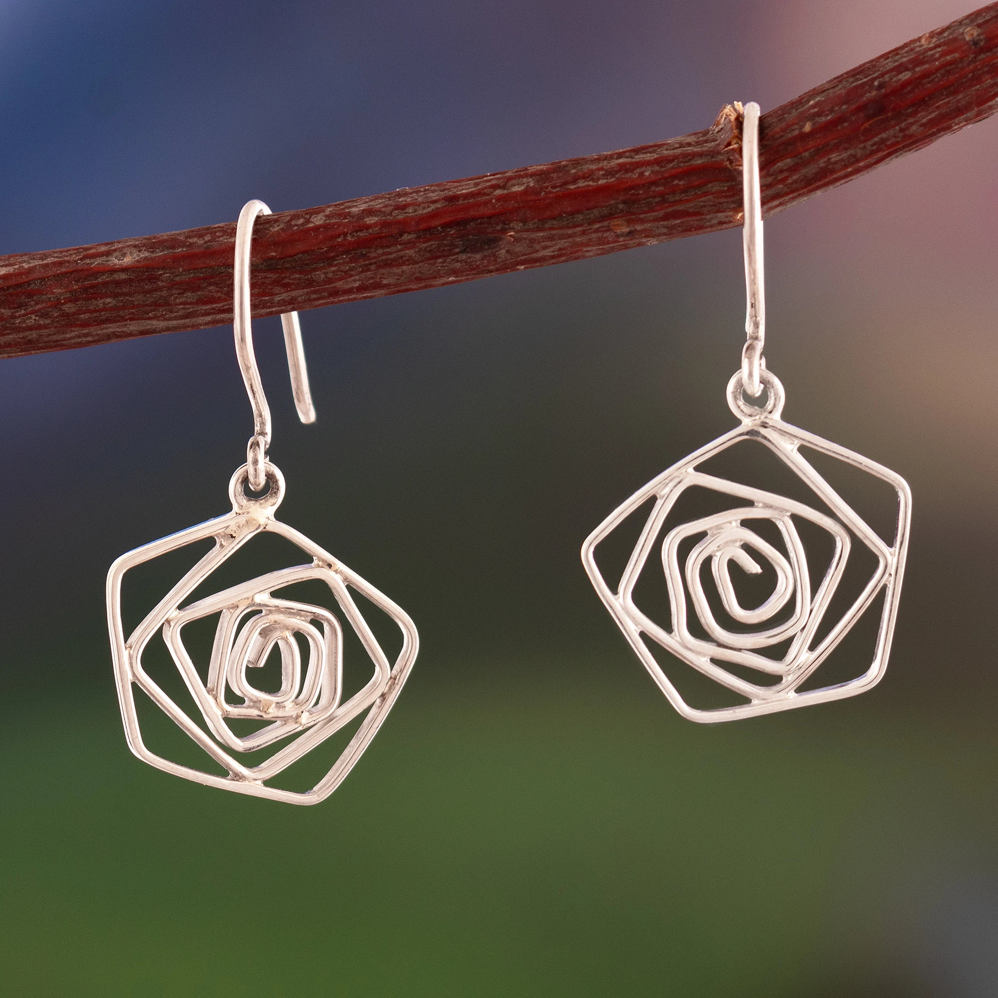 Modern Abstract Rose-Themed Sterling Silver Dangle Earrings, 'Abstract Rose'
