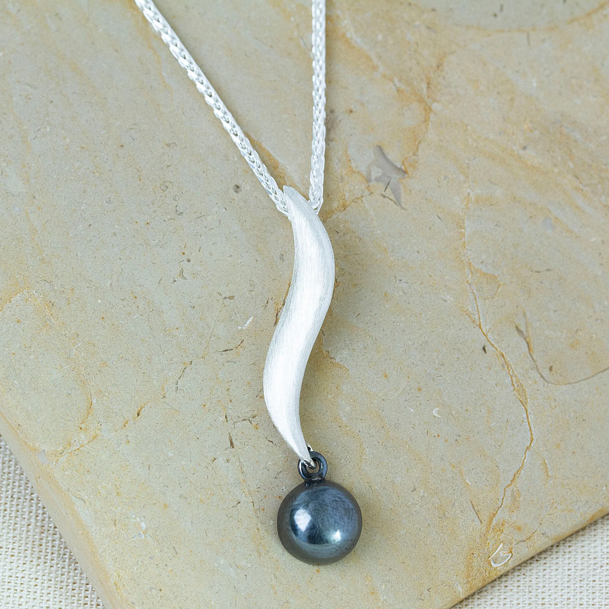 The original, fluid design of this necklace is by Alon Diller. Contrasting matte and burnished finishes, the pendant is crafted by hand with Taxco silver and hangs from a sterling chain.
