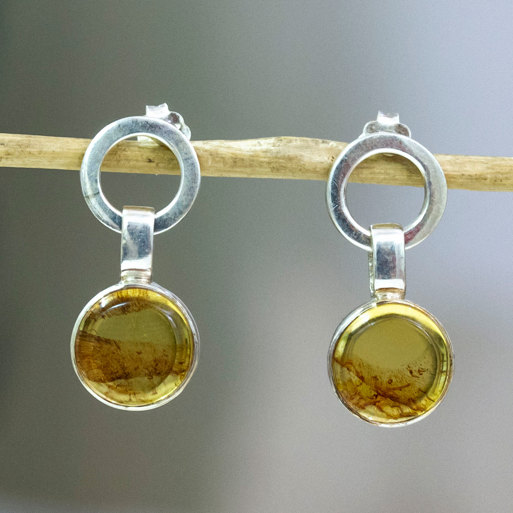Modern Amber Dangle Earrings from Mexico, 'Contemporary Flair'