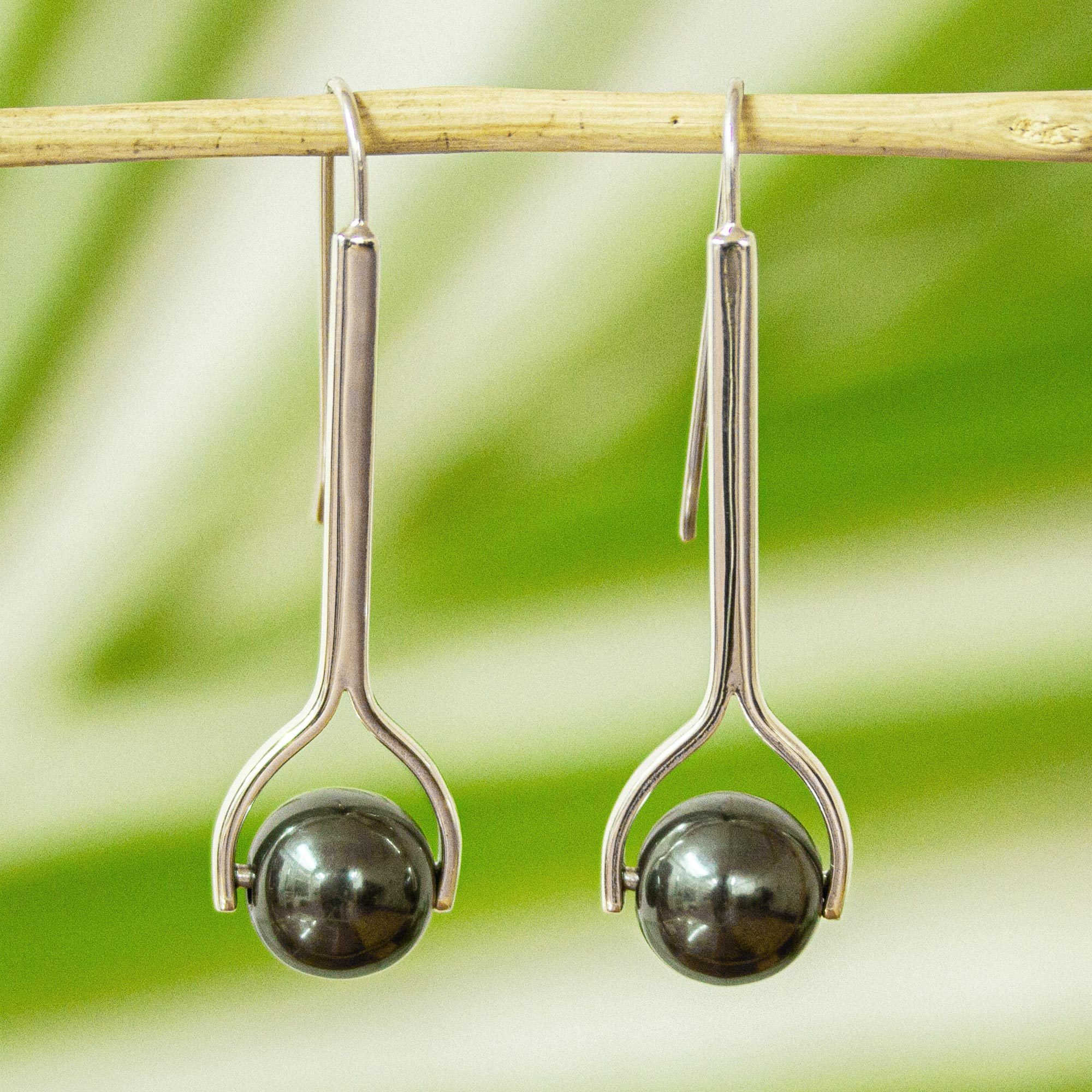 Modern Fine Silver Drop Earrings from Mexico, 'Nocturne Pendulum'