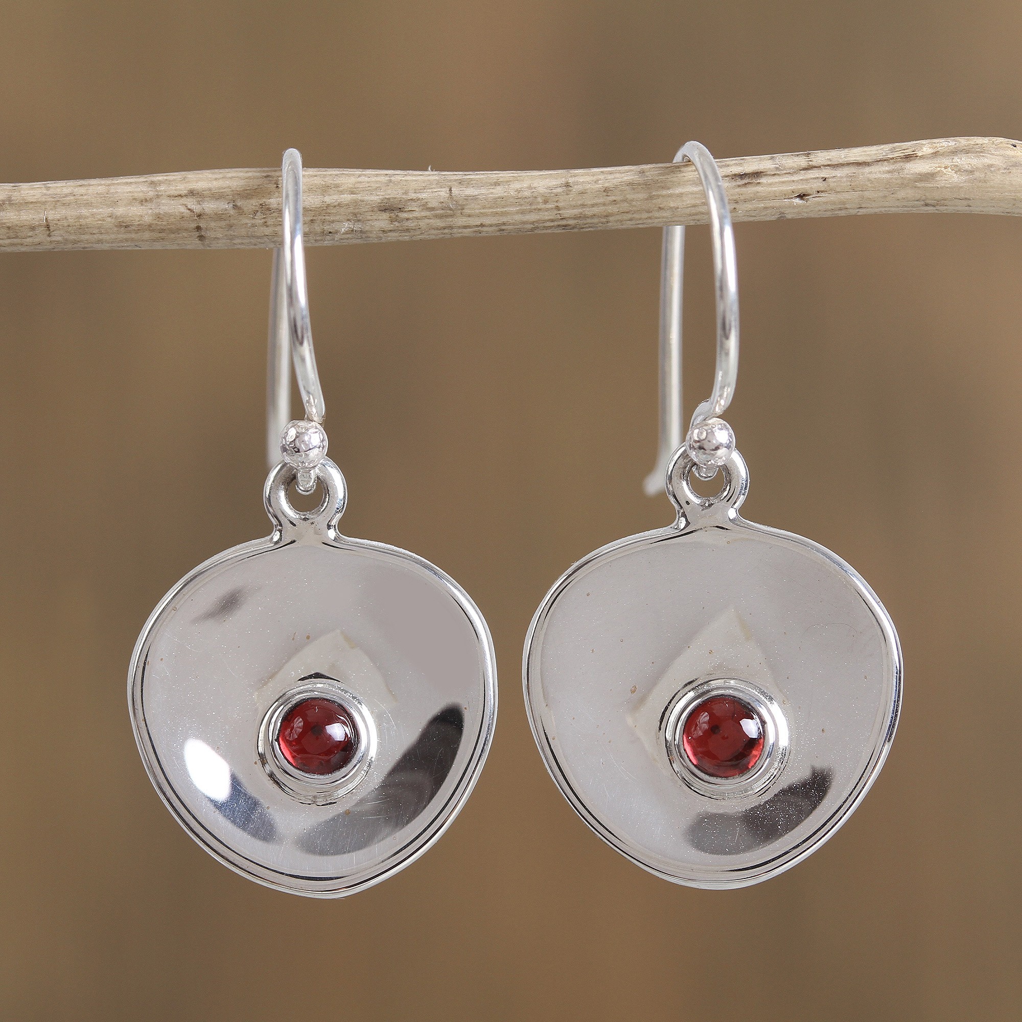 Modern Garnet Dangle Earrings from Mexico, 'Parabolic Form'