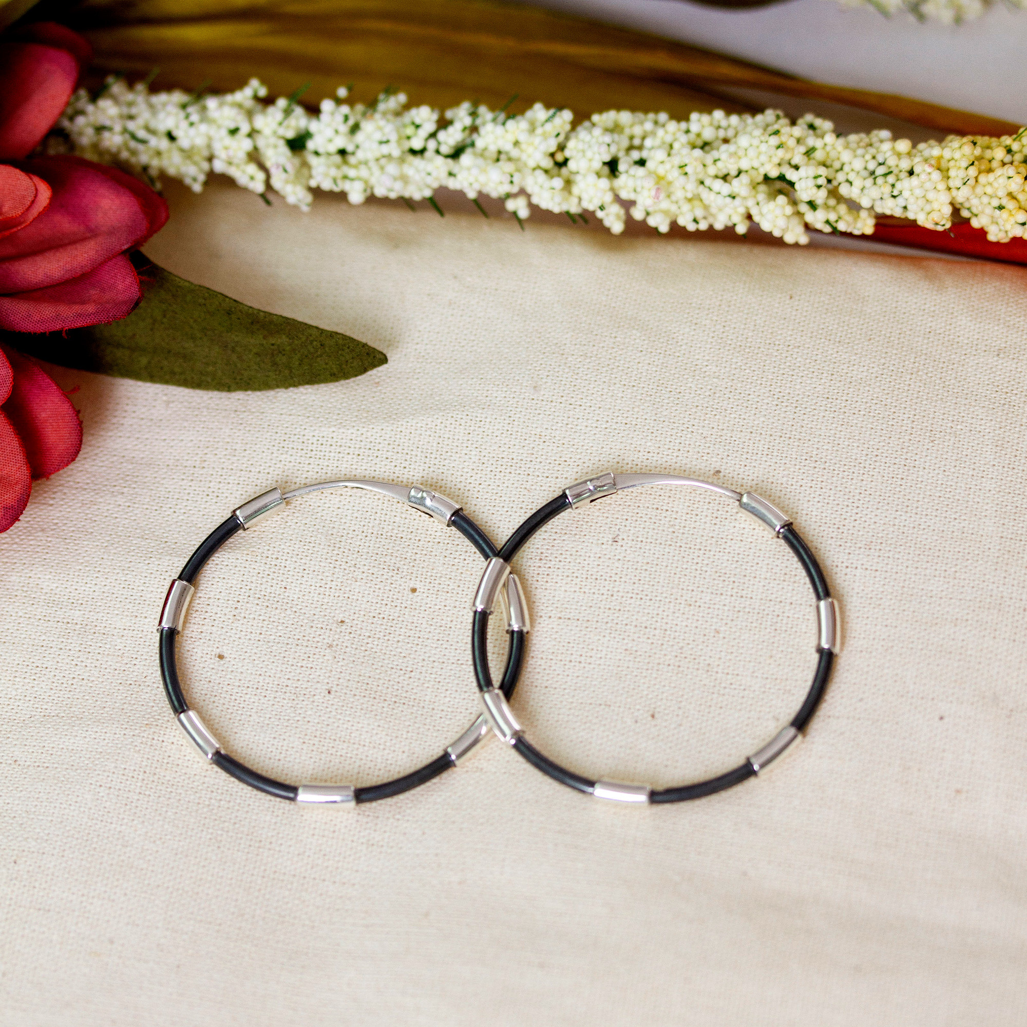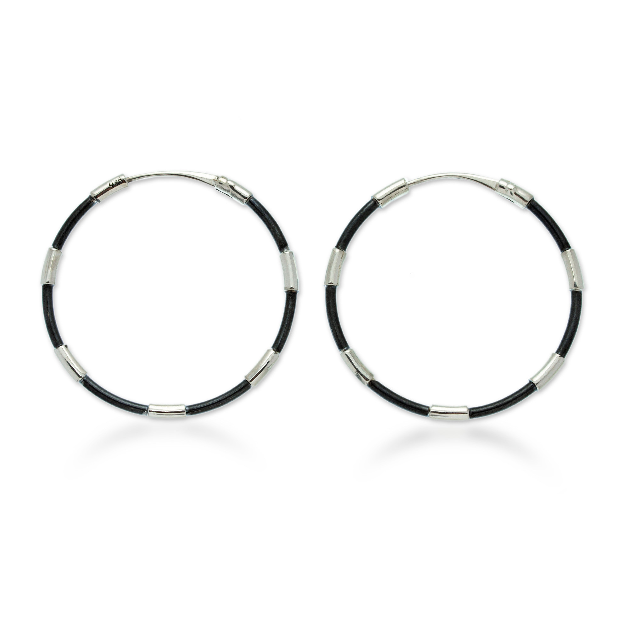 Modern Oxidized Polished Taxco Silver Hoop Earrings, 'Stylish Blend'