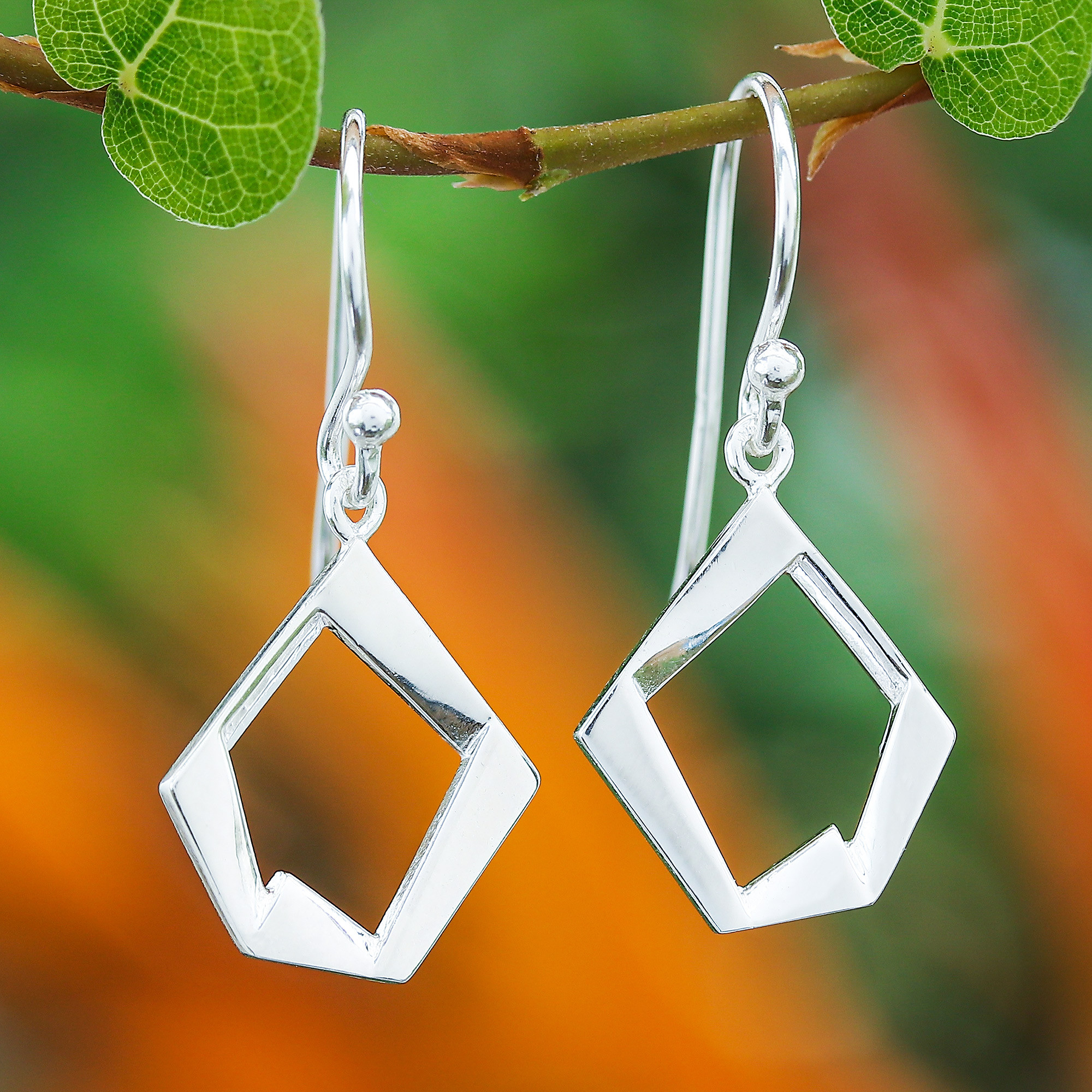 Modern Pentagon-Shaped Sterling Silver Dangle Earrings, 'Sublime Pentagon'