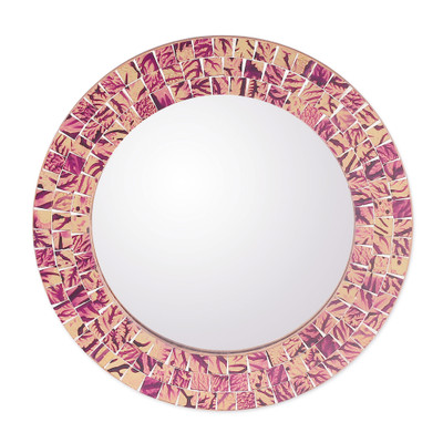 Modern Purple and Golden-Hued Glass Mosaic Wood Wall Mirror, 'Purple Ripples'