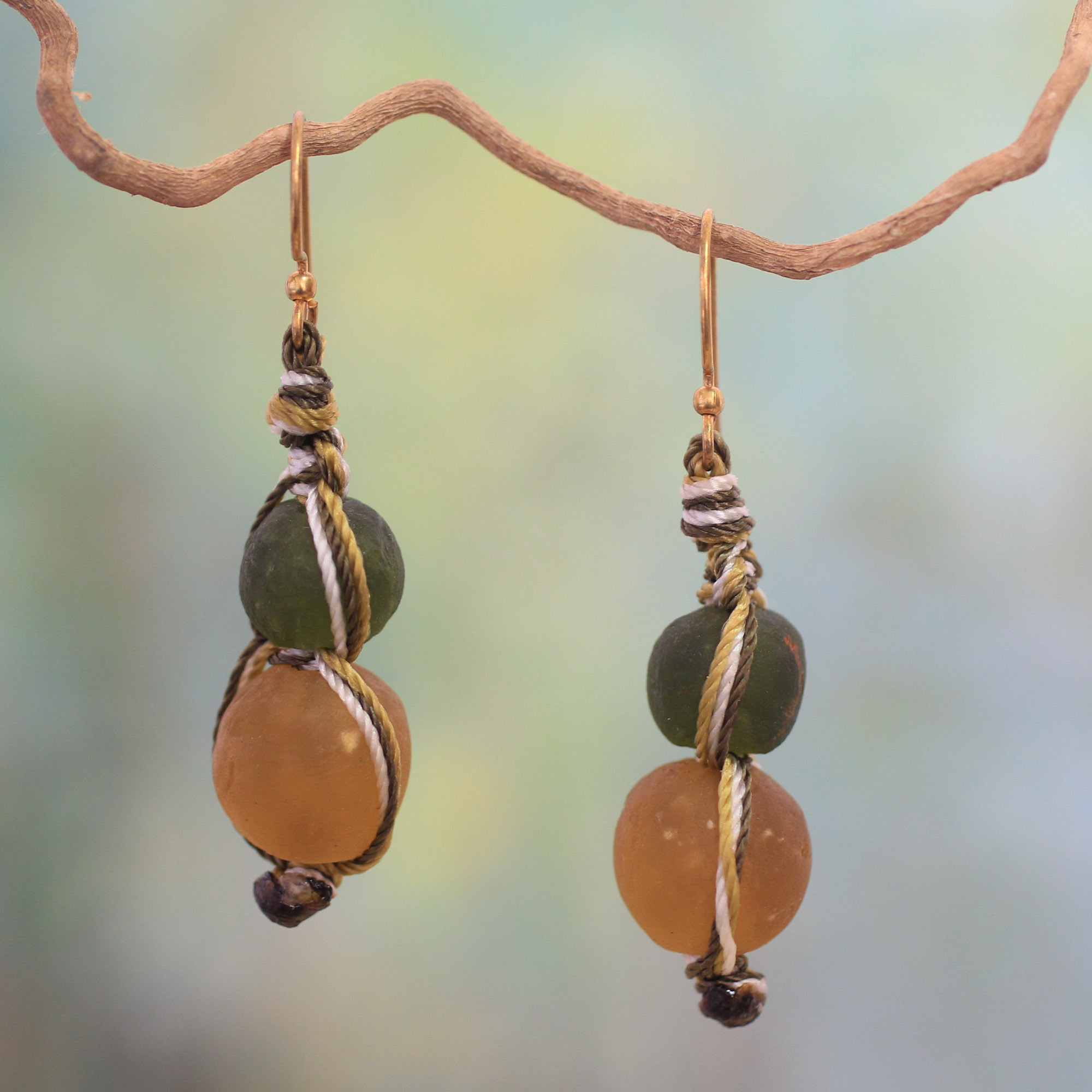 Evoking sunny green fields in summer, these earrings feature beads in green and amber tones. Nonyem Abena Ibeneme knots them by hand with macrame techniques to create the elegant pair. "This design is an alternative to the usual," the Nigerian artisan says.