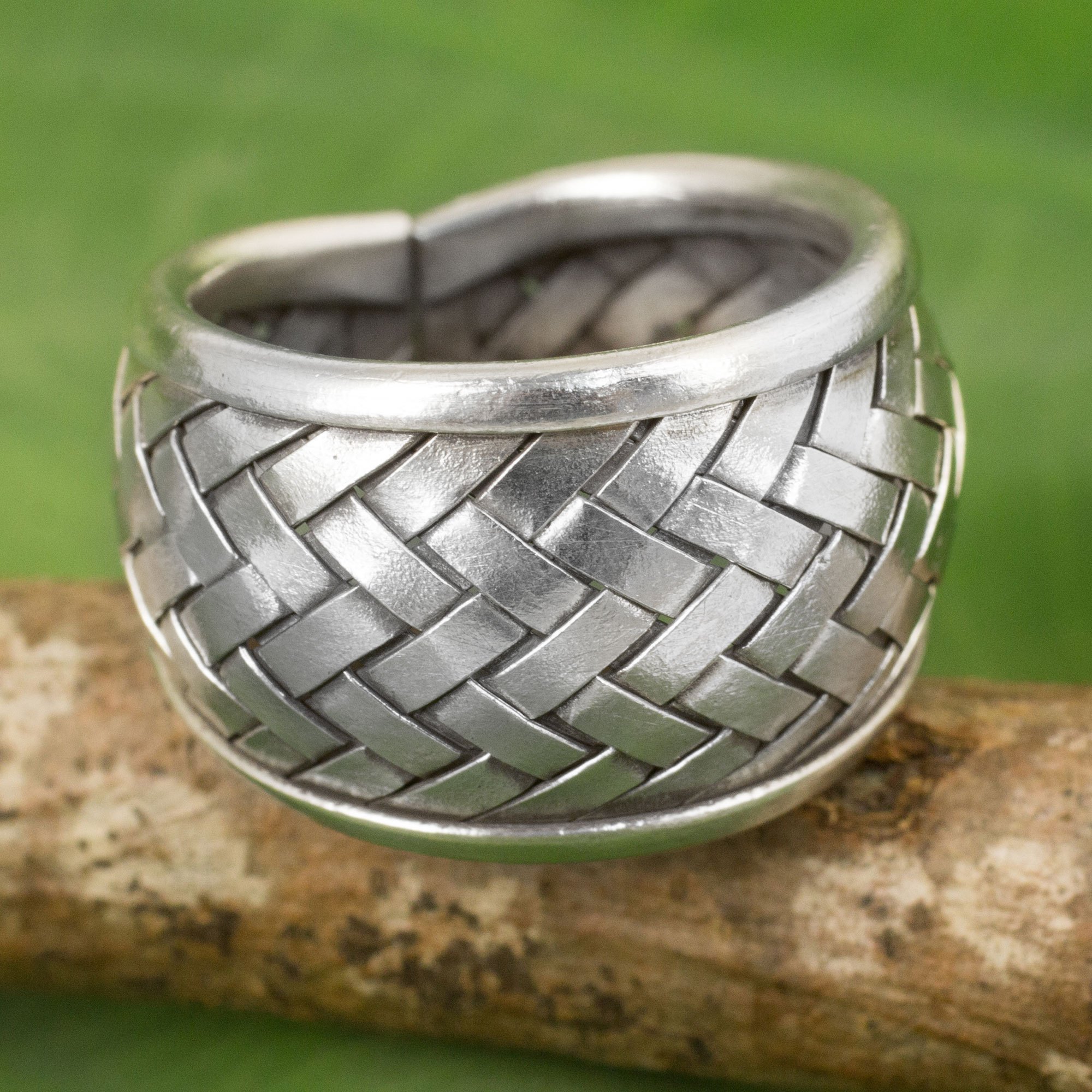 Modern Silver Band Ring with Woven Textures Crafted by Hand, 'Weaving Fantasies'
