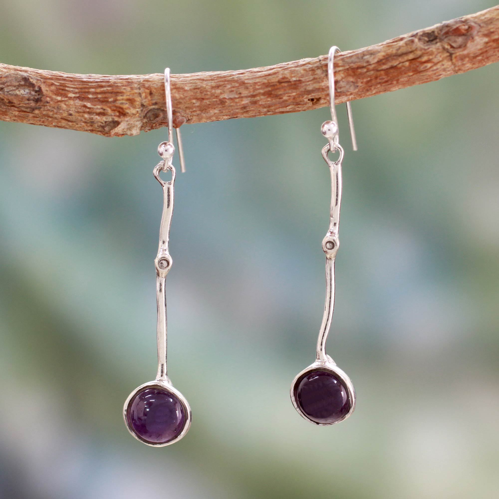 Modern Silver Earrings with Amethyst, 'Pendulum'