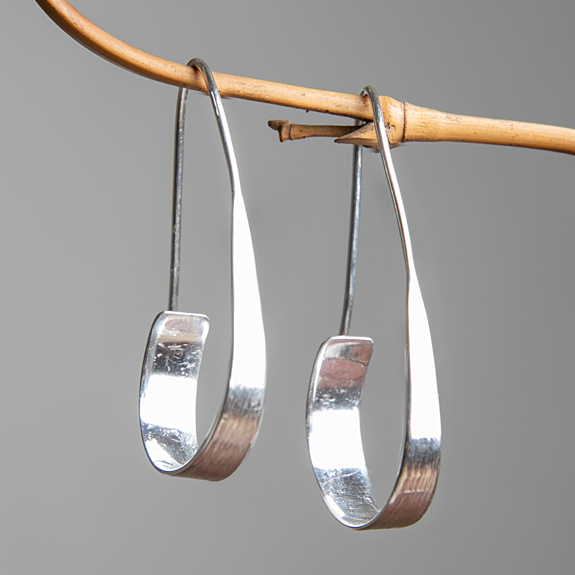 Sculptural and striking, these modern half-hoop earrings redefine everyday silver with artistic flair. Designed in Bali by Dhea Pramesthi, each sterling silver curve features a brushed-satin finish that catches the light with subtle sophistication, creating a soft glow that feels both contemporary and timeless. The elongated silhouette adds an architectural edge to your look while remaining beautifully lightweight and comfortable. Perfect for those who appreciate minimalist design with a twist, these earrings bring an effortless touch of gallery-worthy elegance to everything from casual weekends to polished office days.