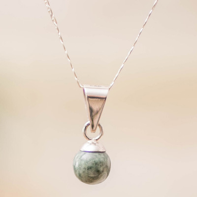 A solitary light green jade stone becomes the centerpiece of this contemporary sterling silver necklace, its smooth surface catching glimpses of light as it moves with grace. The pendant's minimalist design honors Mayan cosmic traditions, symbolizing renewal and natural harmony through its pristine form and tranquil green tone. Guatemalan artisan Zandra Lorena Sajbin brings this meaningful accessory to life with meticulous craftsmanship, pairing the jade with a classic mariner chain that provides both security and refined style for everyday wear or special occasions.