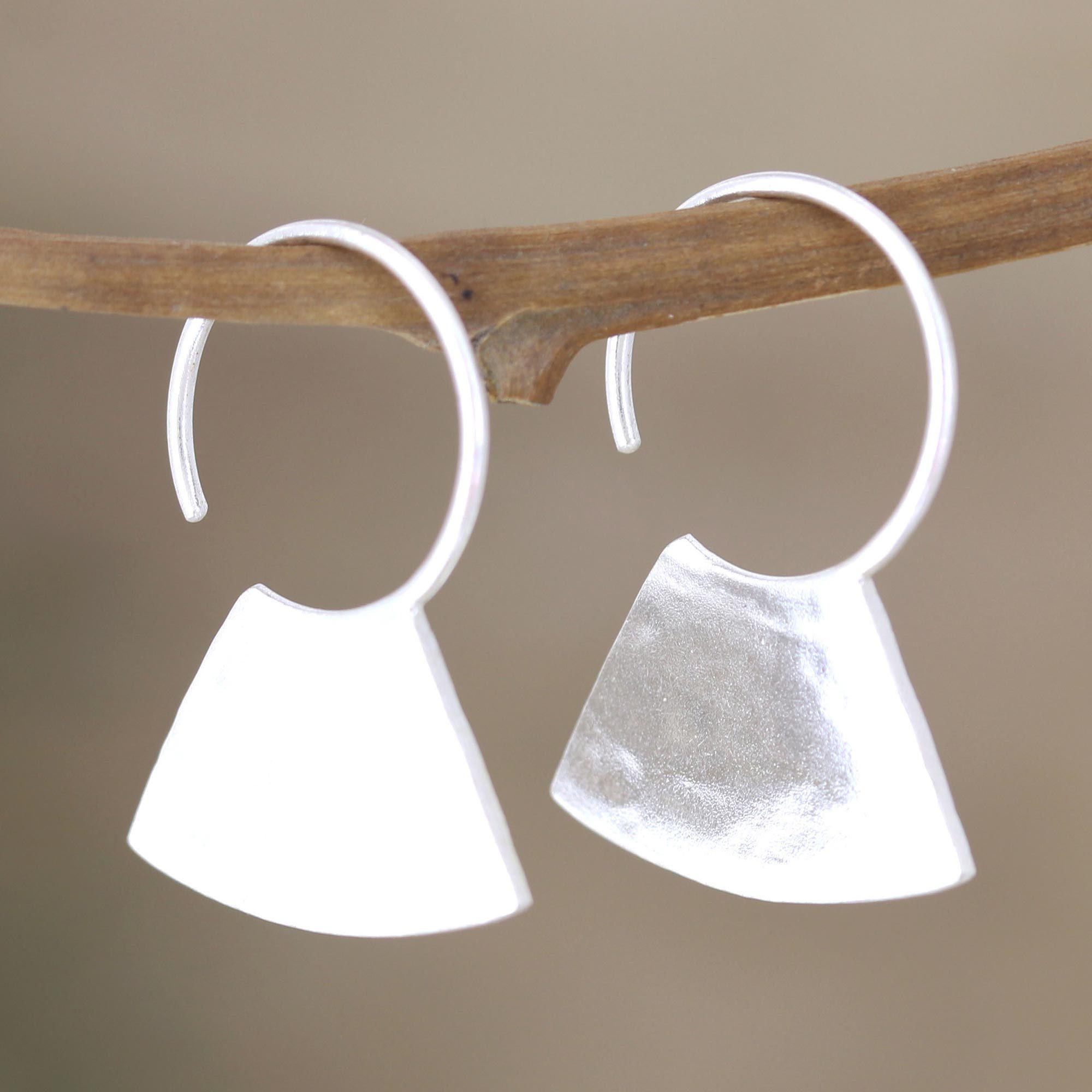 Modern Sterling Half-Hoop Earrings, 'Blade'