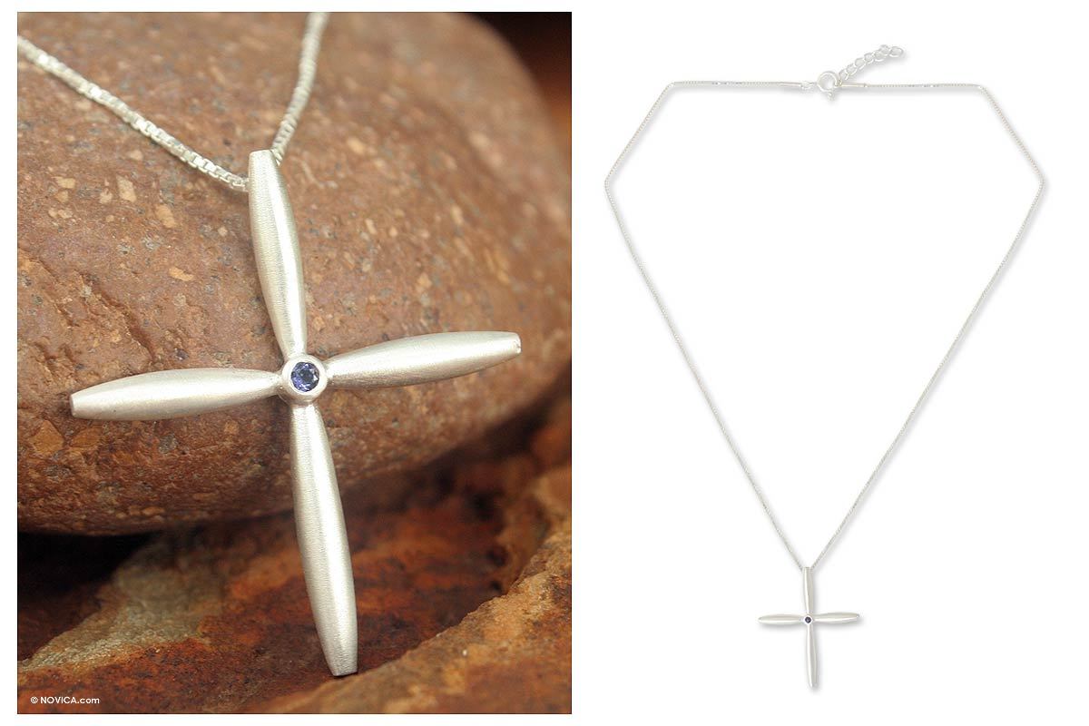 Stone of vision, iolite is believed to open the paths to the inner self. Iolite centers a sterling silver cross with its unique blue-violet twilight glow. Thailand's Jantana is inspired by aesthetic minimalism for the stunning design of this matte handcrafted necklace. Total gemstone weight is 0.1 carats.