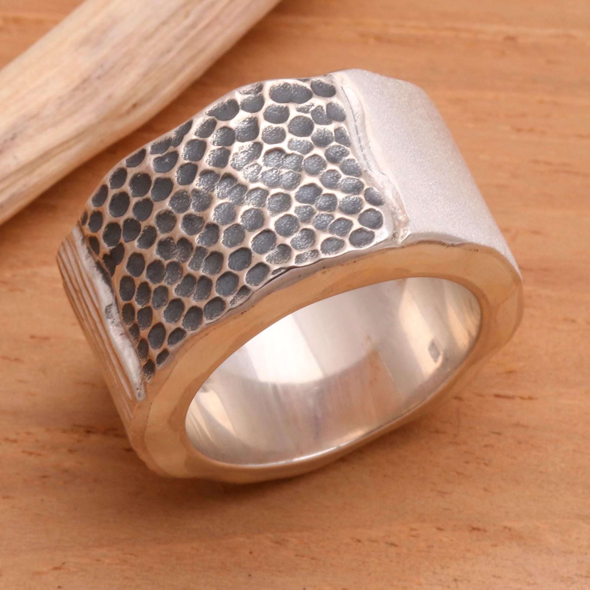 Modern Sterling Silver Band Ring from Indonesia, 'Embrace the Earth'