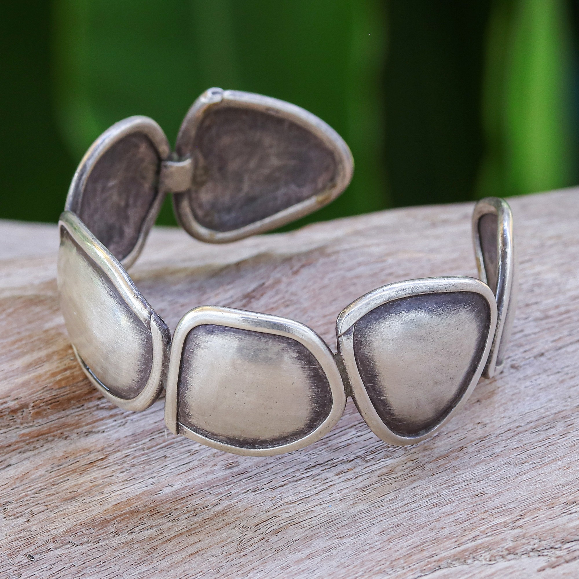 Modern Sterling Silver Cuff Bracelet in a Polished Finish, 'Avant-Garde Sensations'