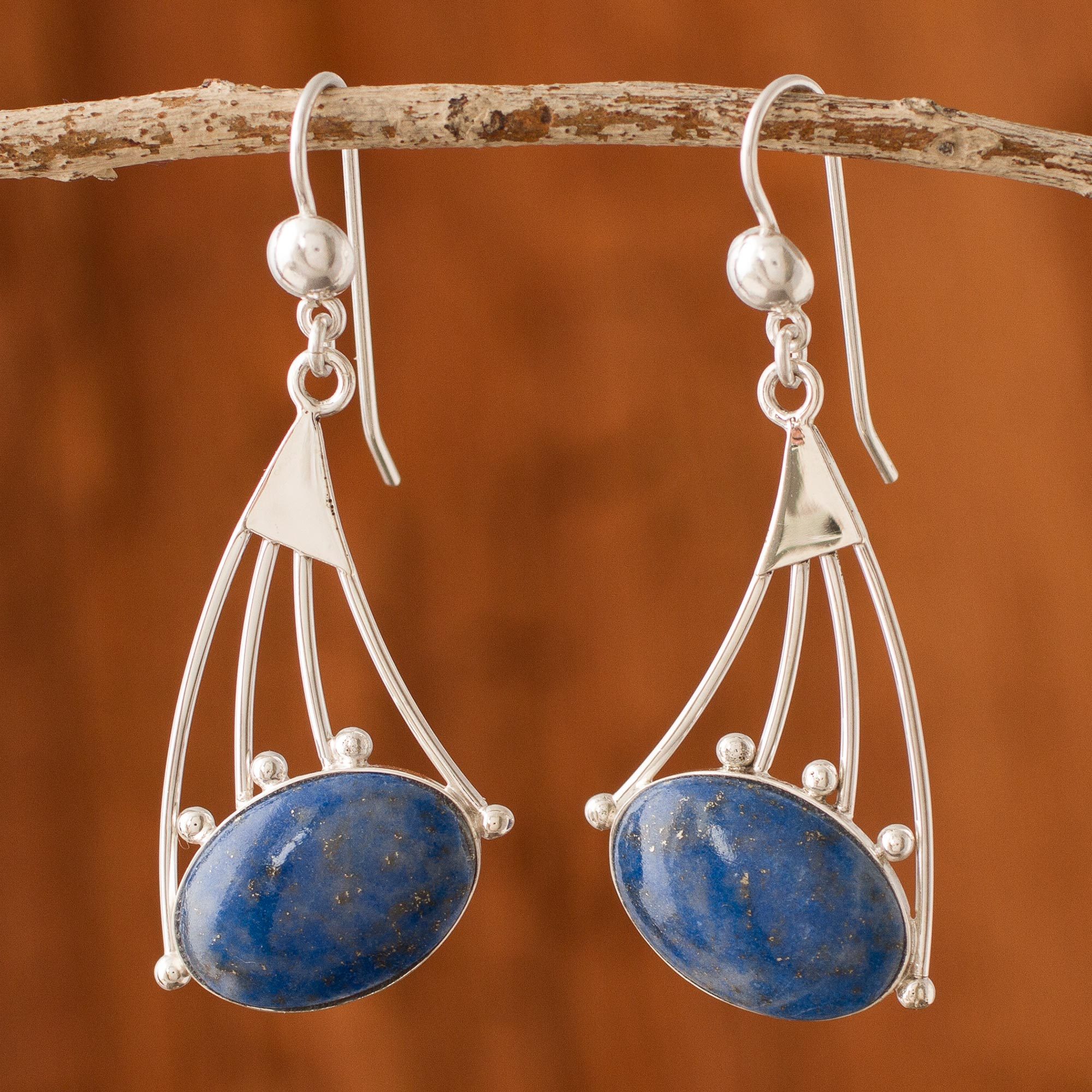 • Sterling silver and lapis lazuli