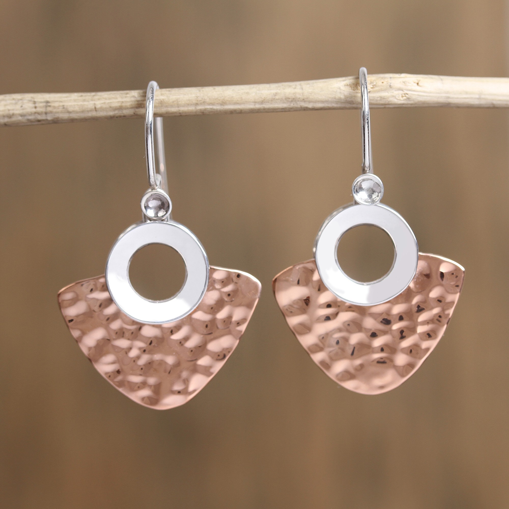 Modern Taxco Sterling Silver and Copper Dangle Earrings, 'Rippling Water'